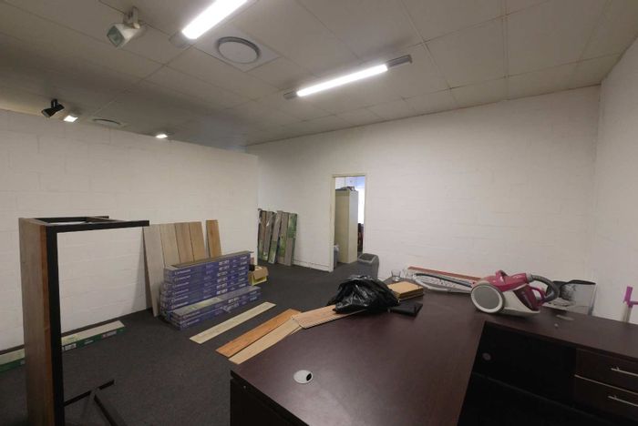 Bright, refurbished ground-floor unit in a secure, well-managed business park — open-plan workspace with high ceilings, two entrances, kitchenette, two ablutions and six dedicated parking bays.