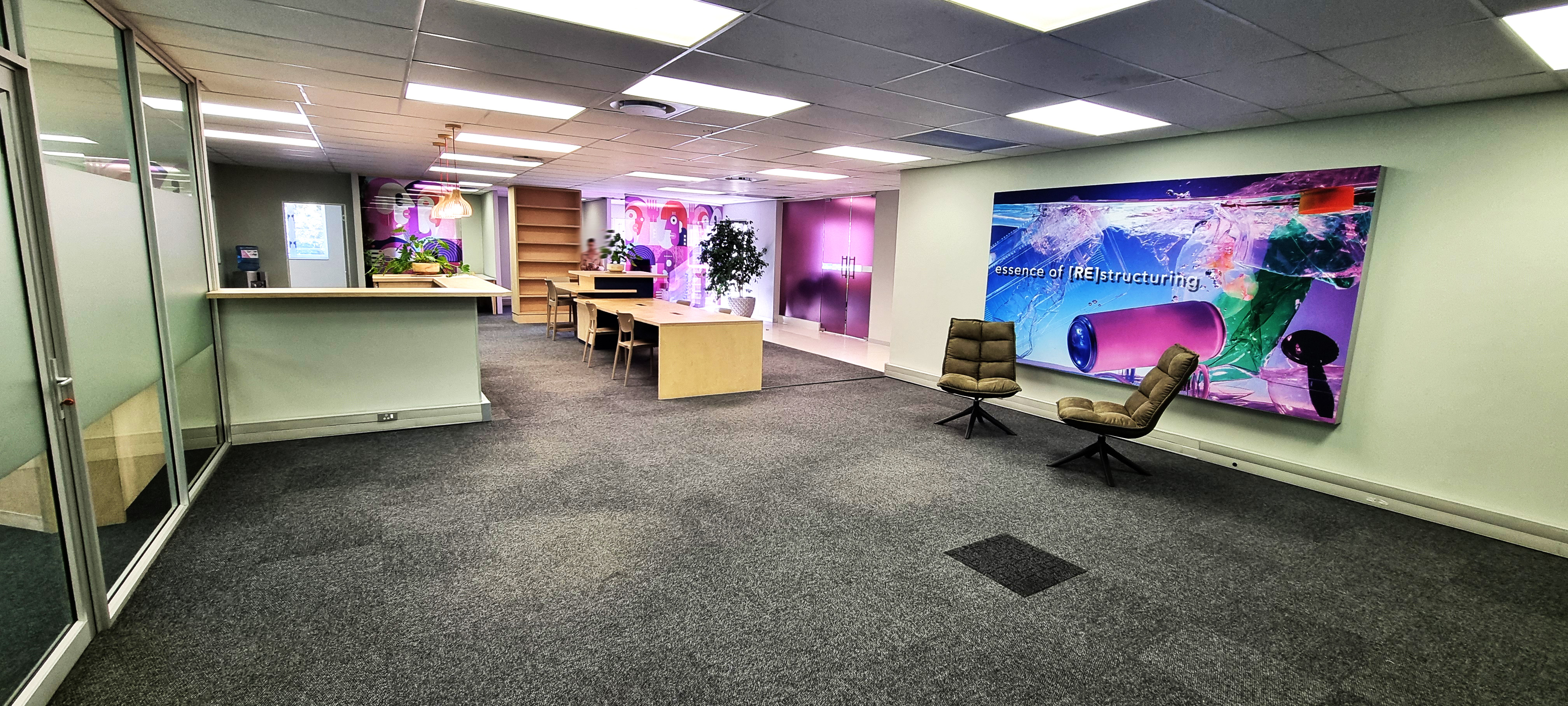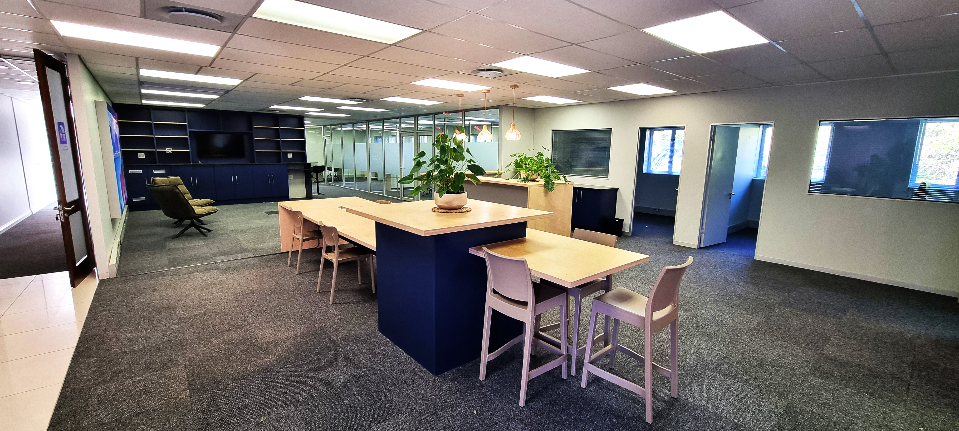 Interior Excellence Upon entering Amdec House, visitors are greeted by a grand double-volume foyer that exudes a sense of openness and professionalism. The reception area, meticulously designed for a warm welcome, sets the tone for what lies beyond. Inside, the offices feature communal ablutions and kitchens, fostering a sense of community among occupants. The interior spaces are thoughtfully crafted to enhance productivity, making it an ideal choice for businesses aiming for both comfort and functionality.