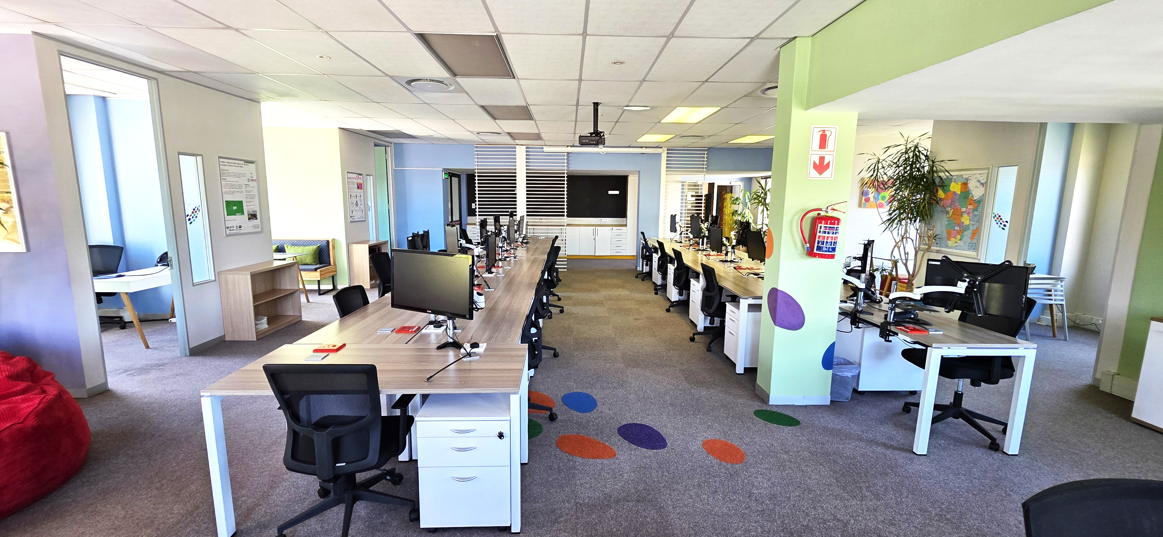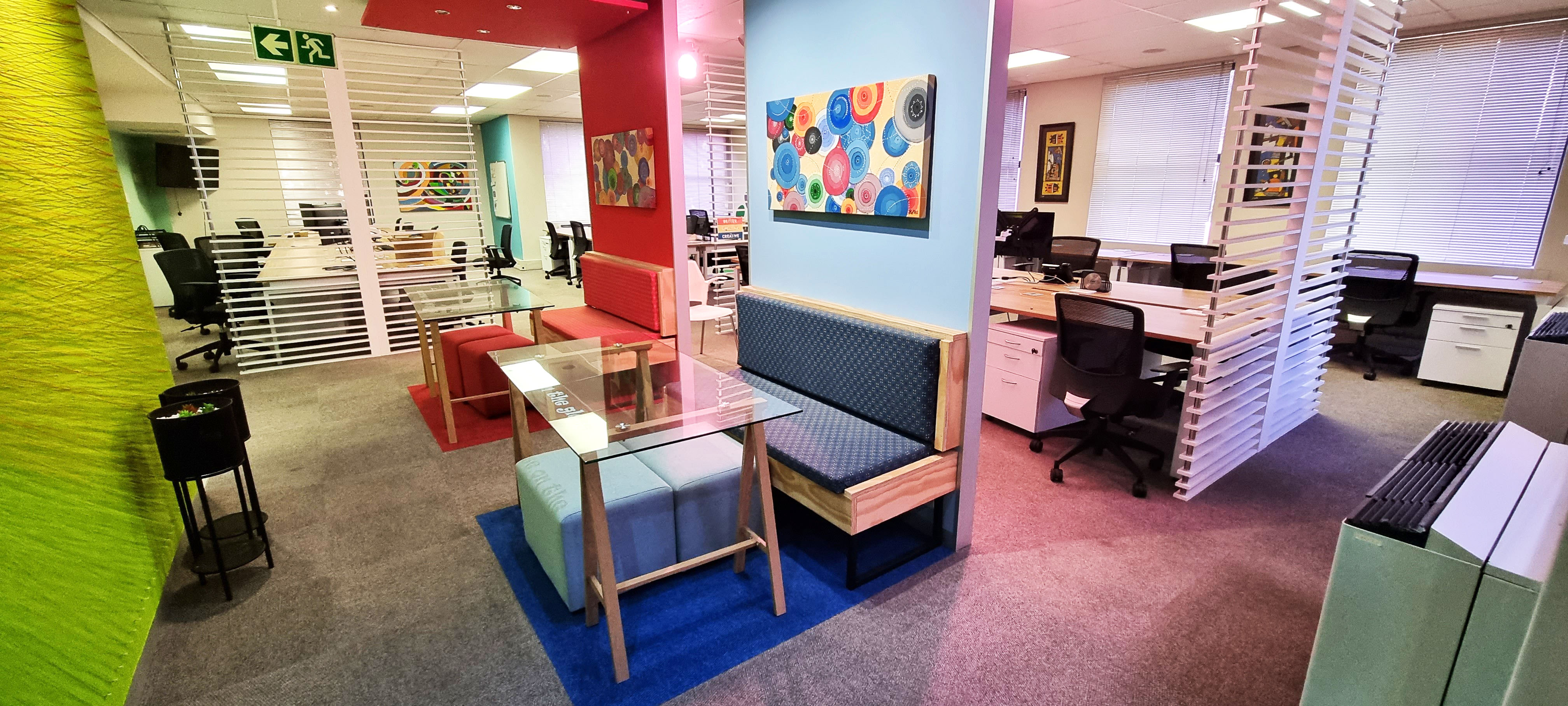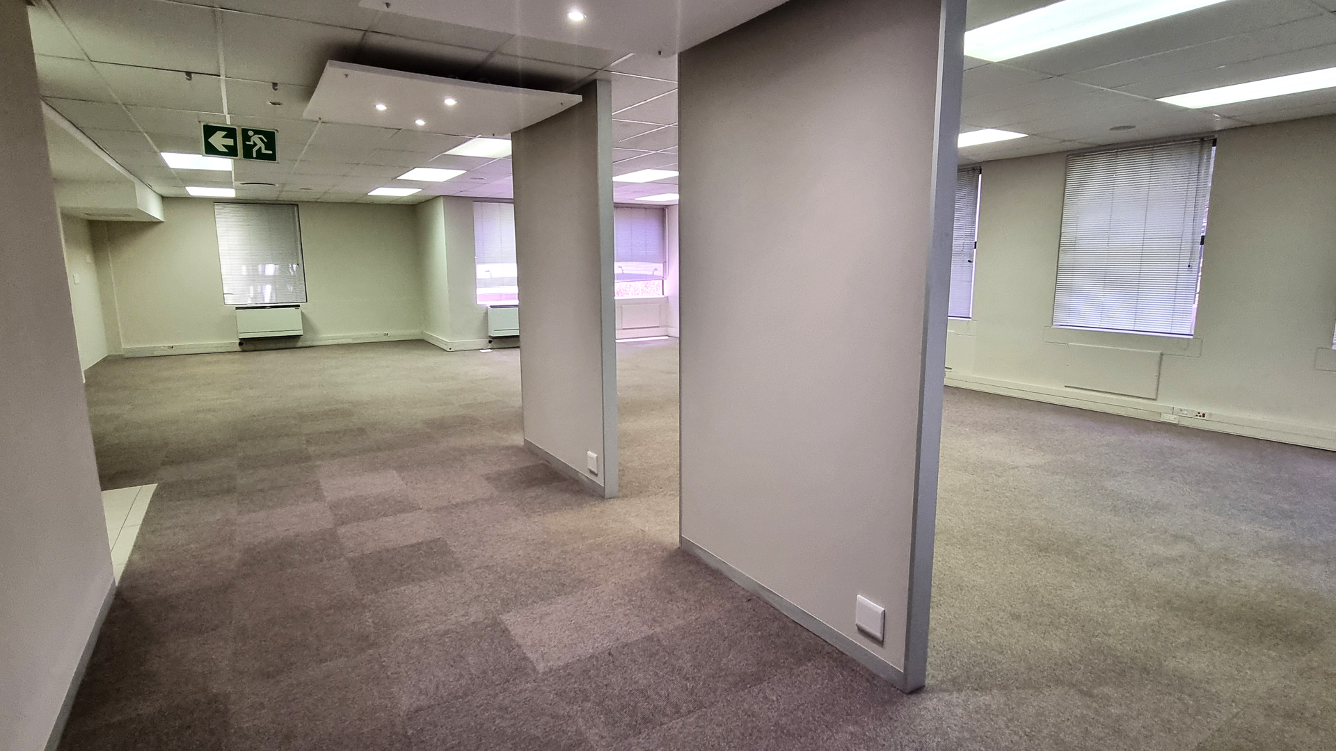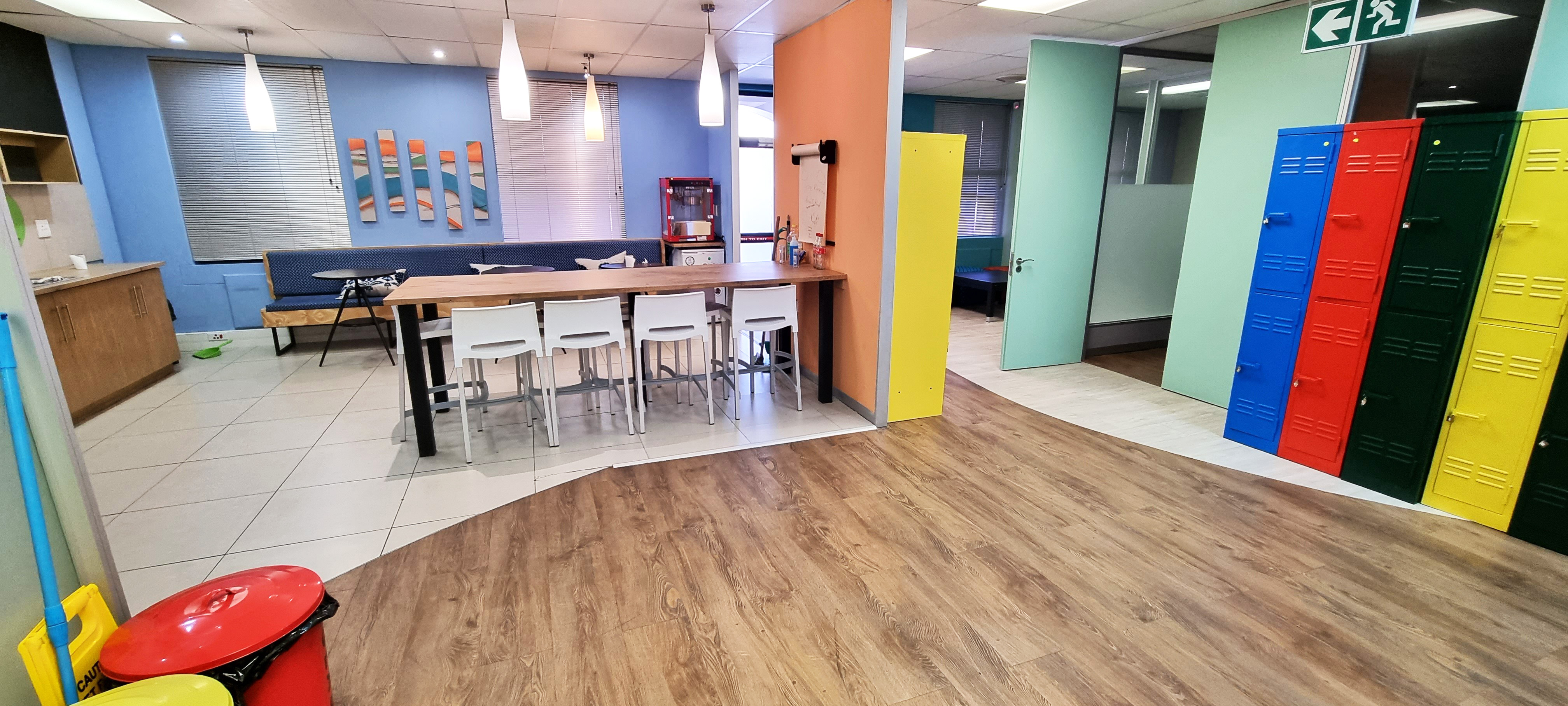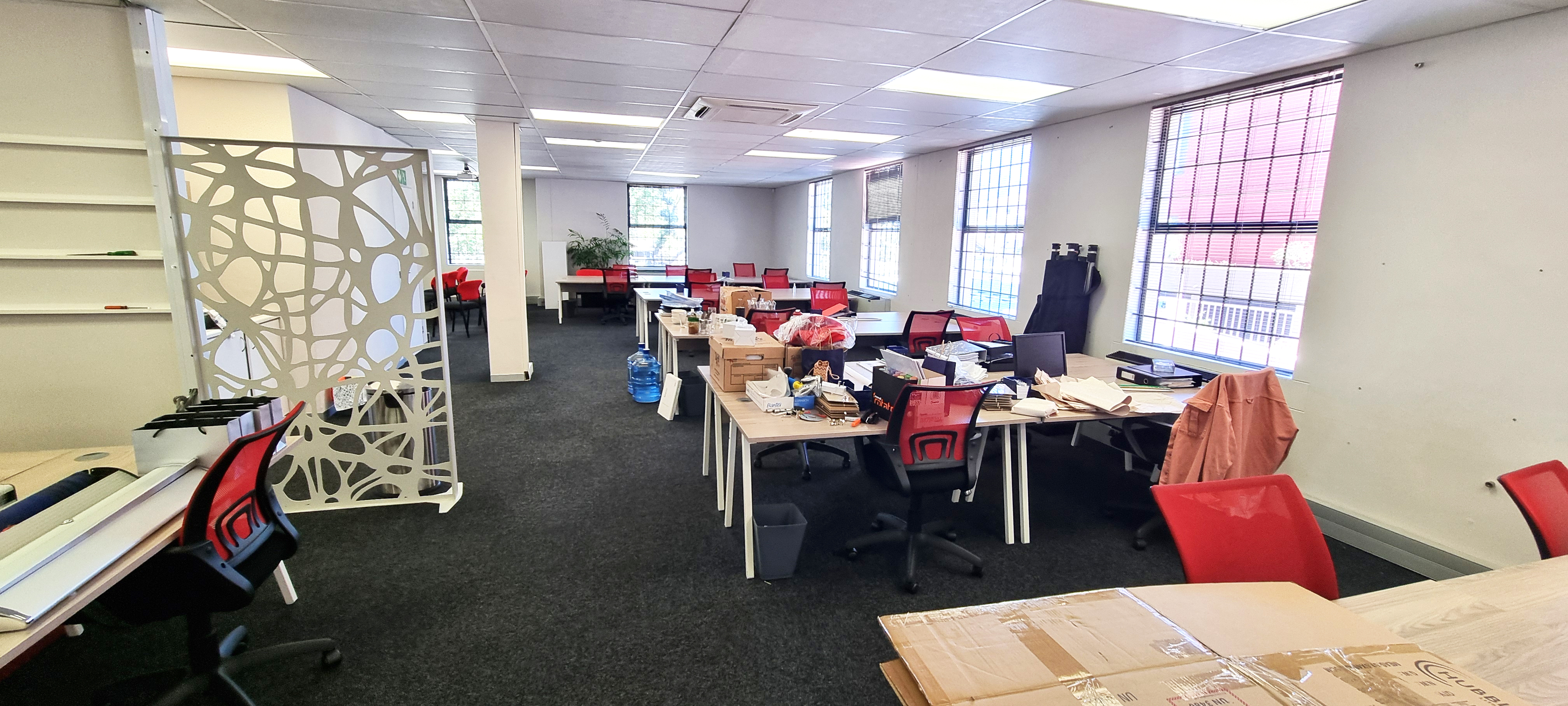 Upon entering the building, visitors are welcomed by a spacious double-volume foyer with a dedicated reception area, creating a strong first impression. The offices are finished to a high standard and benefit from large windows providing abundant natural light, modern interiors, and air conditioning throughout. Tenants also enjoy access to communal kitchens and ablution facilities on each floor, ensuring convenience and comfort.