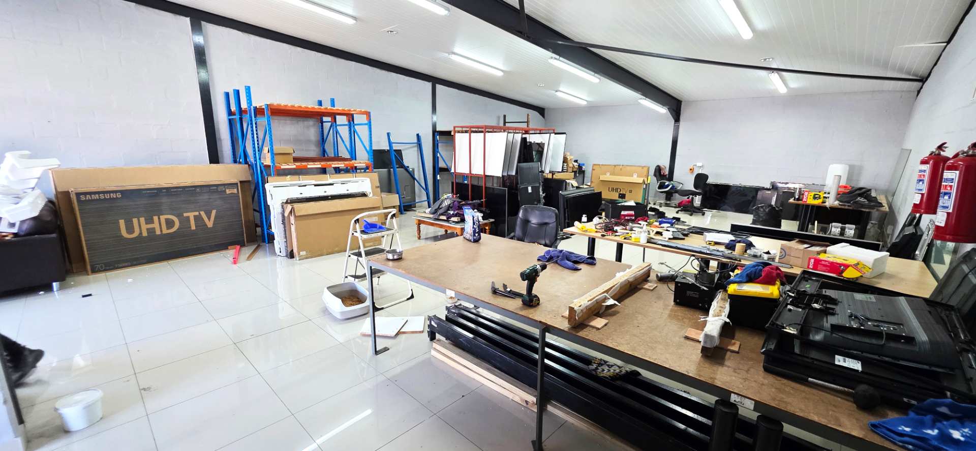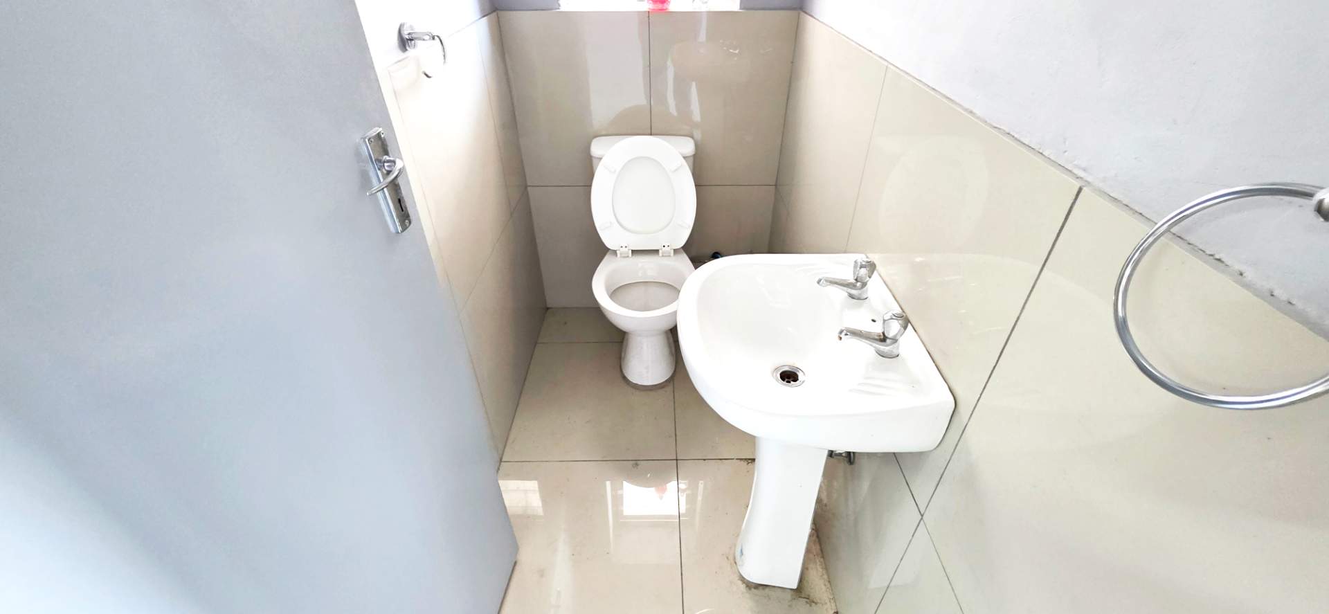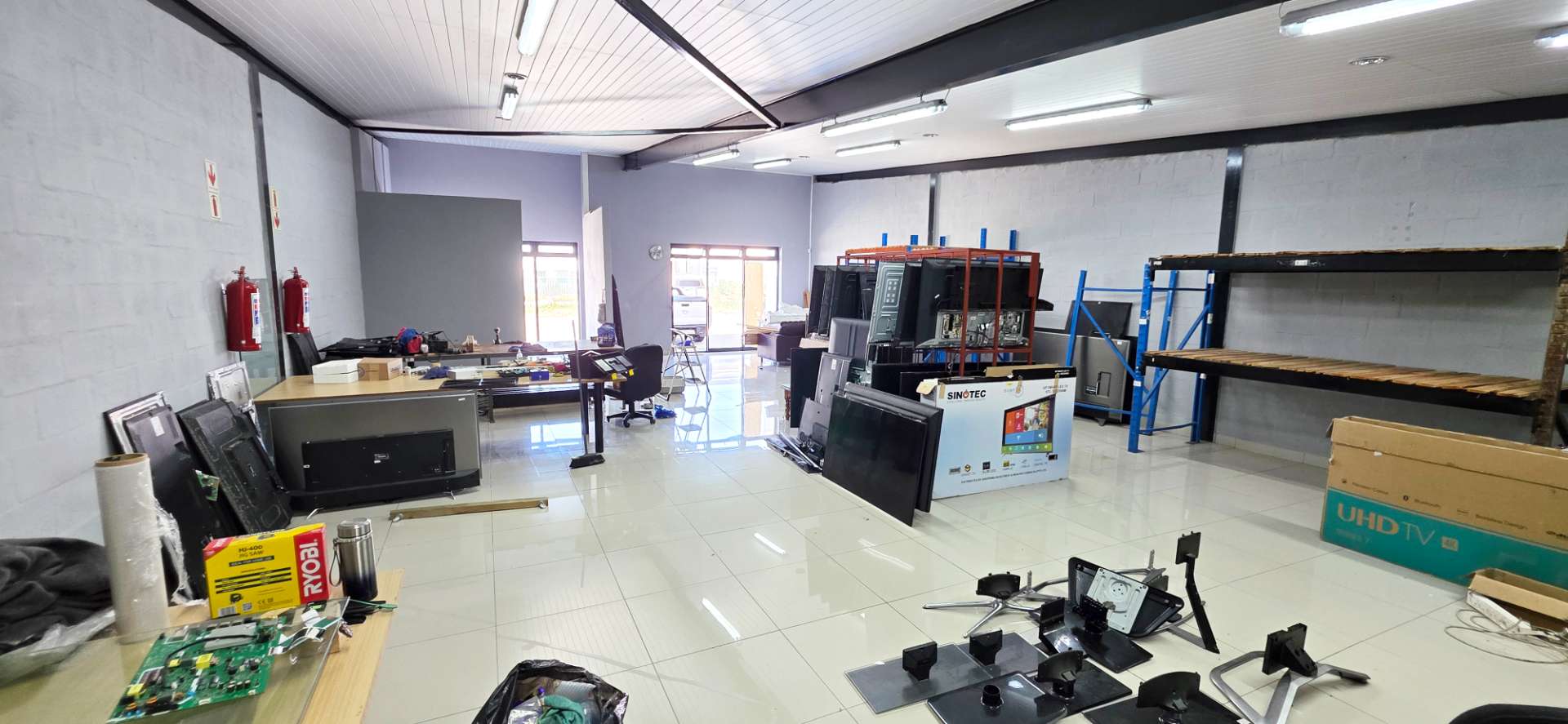 Single glass door to access. Modern finishes, fully tiled and very attractive. Two toilets form part of the space and a three-phase plug has been installed. There is an exclusive kitchenette.