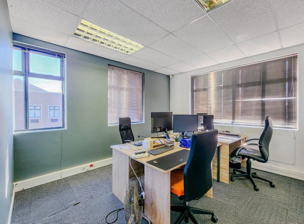 This first floor corner unit is available for sale at Millennium Office Park in Century City. This unit has a practical layout that comprises of a small reception office, meeting room and open plan back office area with kitchenette and bathroom. Air-conditioner installed.