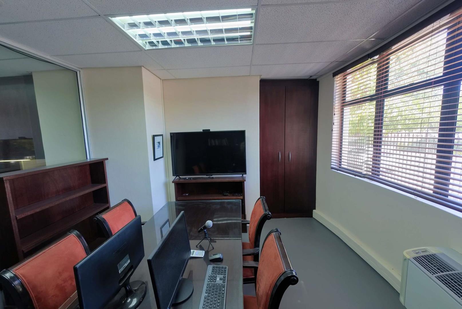 The office is offered fully furnished, as pictured, with ample desks and chairs, a boardroom table and chairs, reception desk storage credenzas etc. There is also an option to utilise existing office equipment, including desktop monitors, a boardroom TV and a printer, if required. A tenant-controlled pre-paid electricity meter gives direct control over usage and costs.