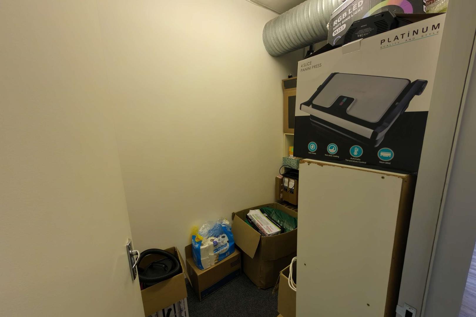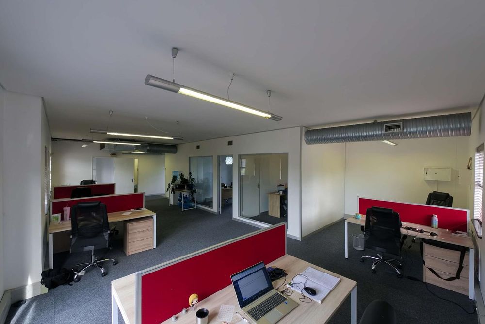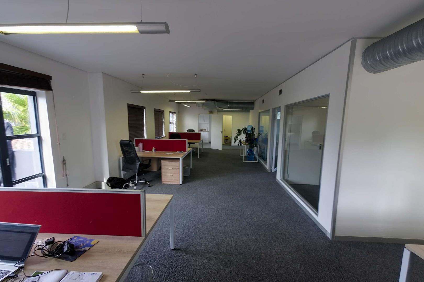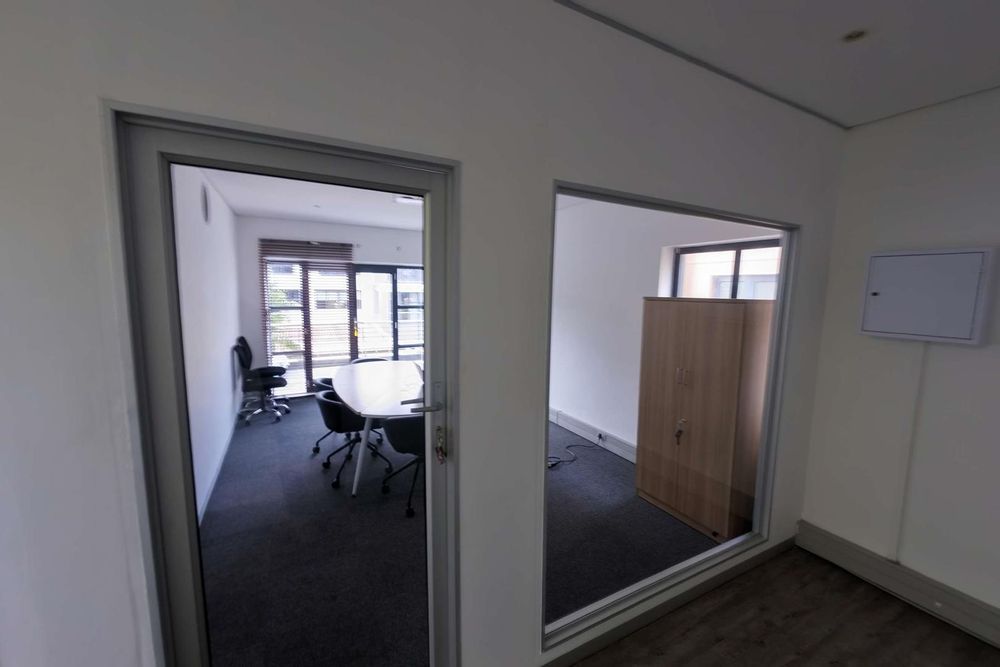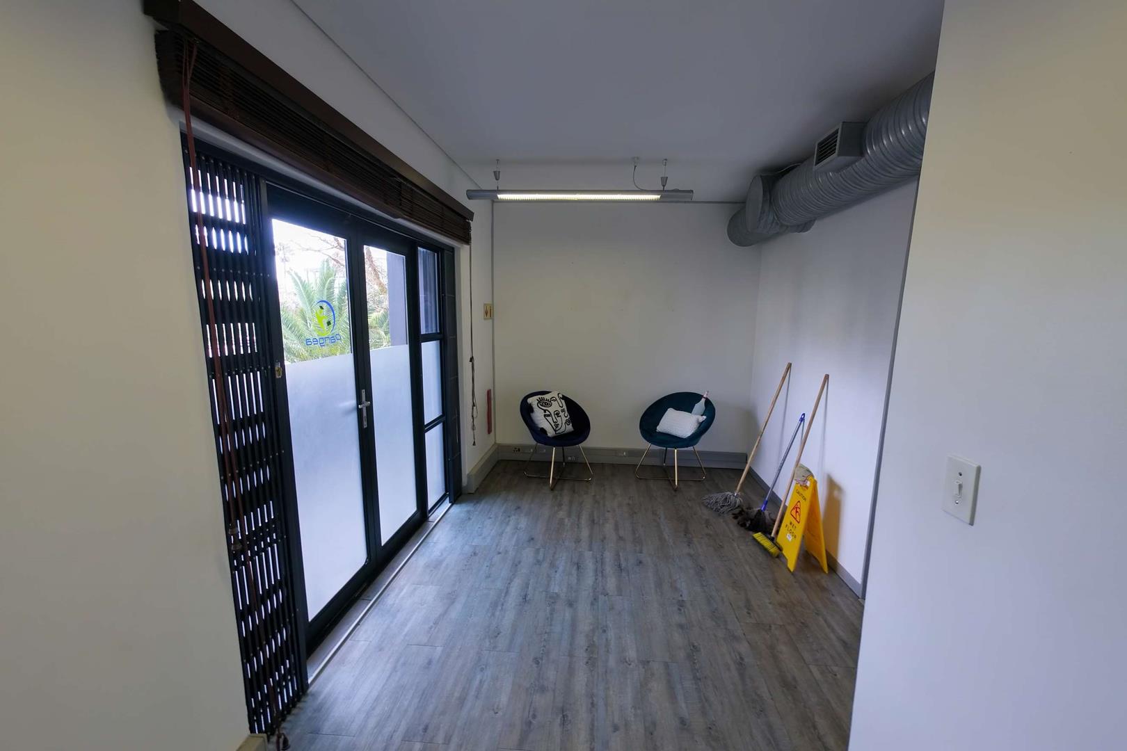 The space offers a practical and well-thought-out layout, consisting of a welcoming reception area, a spacious boardroom, an open-plan co-working area, two private offices, a kitchen, a storeroom, and two private balconies. Exclusive-use bathrooms are located just outside the unit.