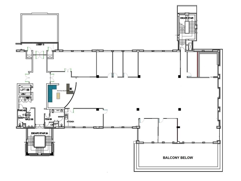 This office suite is situated in Foyer 3 on the third floor, providing a professional and accessible workspace suited to established businesses. The existing layout welcomes visitors into a reception area and includes a dedicated boardroom, a large open-plan workspace, several private offices, a server room, storeroom and a kitchen. The configuration offers an excellent balance between collaborative work areas and private offices with flexibility to adapt or fully transform the layout to meet specific requirements.