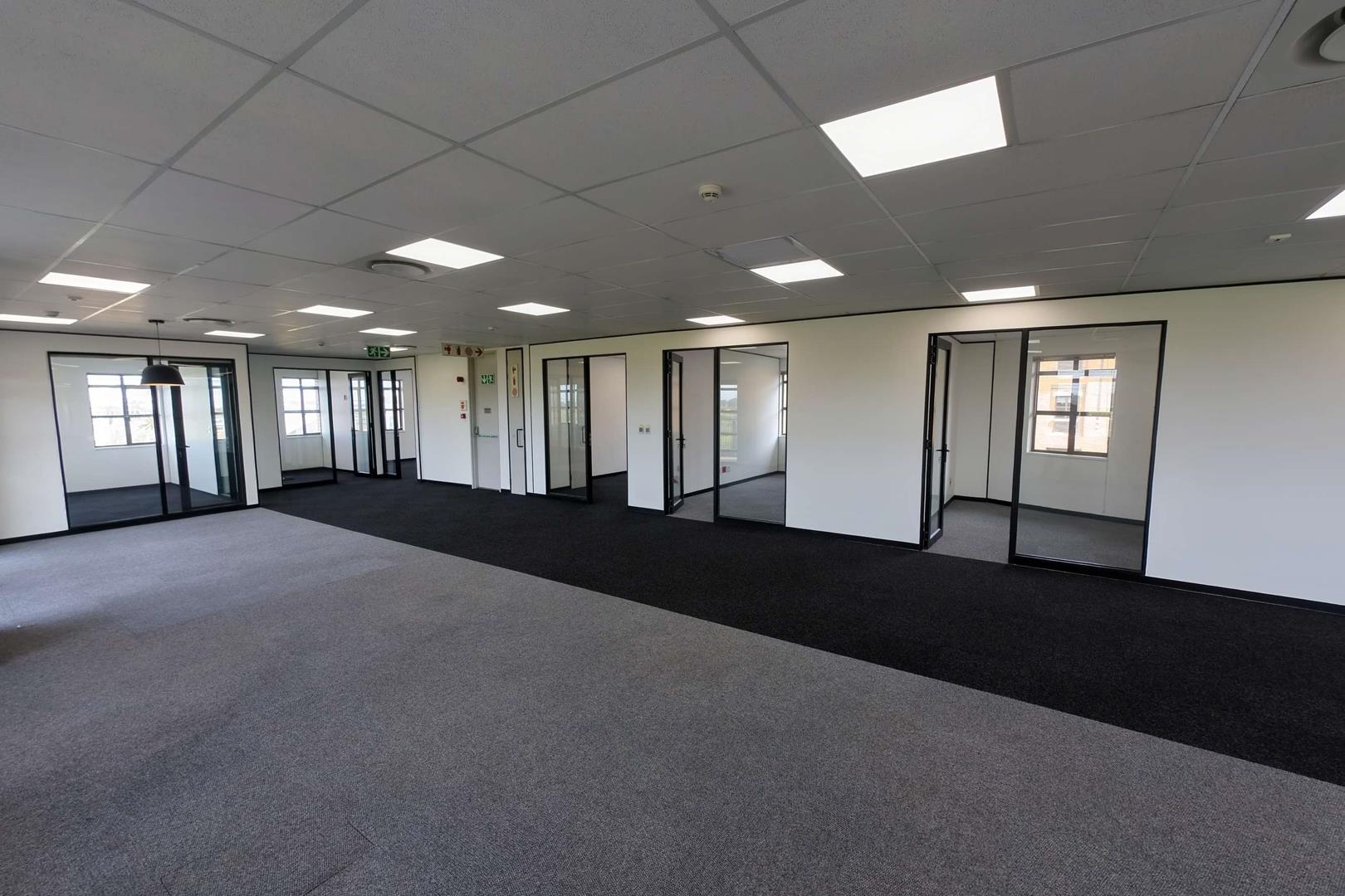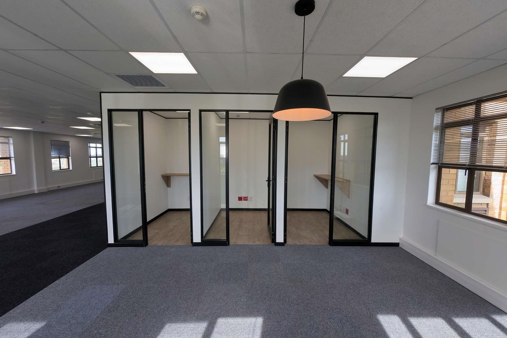 - Large open-plan office areas suitable for 100+ workstations, 6 private offices, and 3 soundproof telephone booths.