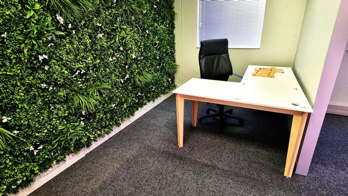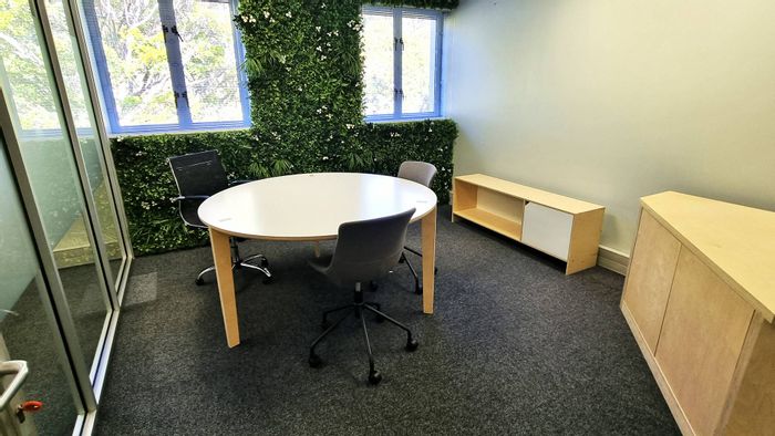 Work in a peaceful, modern hub minutes from the M3/M4/M5 and next to a new Checkers Centre, cafes and Virgin Active — bright office with private balcony and views.