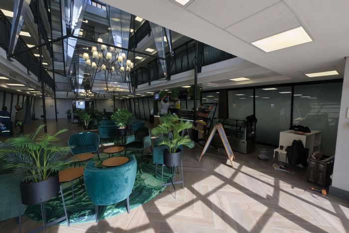 Premium full-floor office in Century City's Waterford Precinct, walking distance to Canal Walk — acoustic-glass atrium, fully fitted reception, meeting rooms and open-plan space for 100+ workstations.