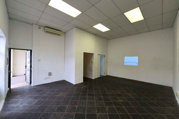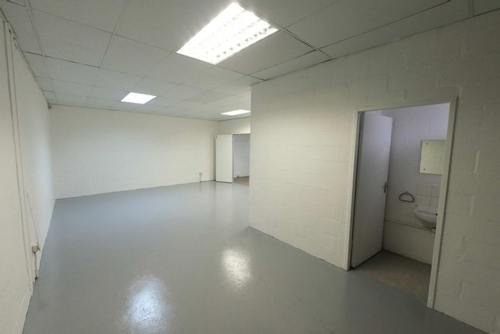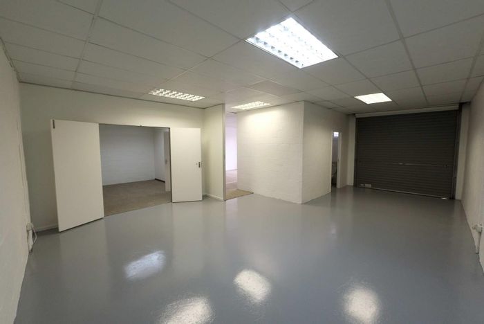 Work from a secure, professional complex in Montague Gardens near major routes; 95sqm with half-office, half-warehouse layout, roller shutter, kitchenette, two toilets and three parking bays.