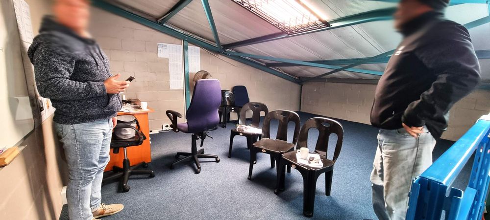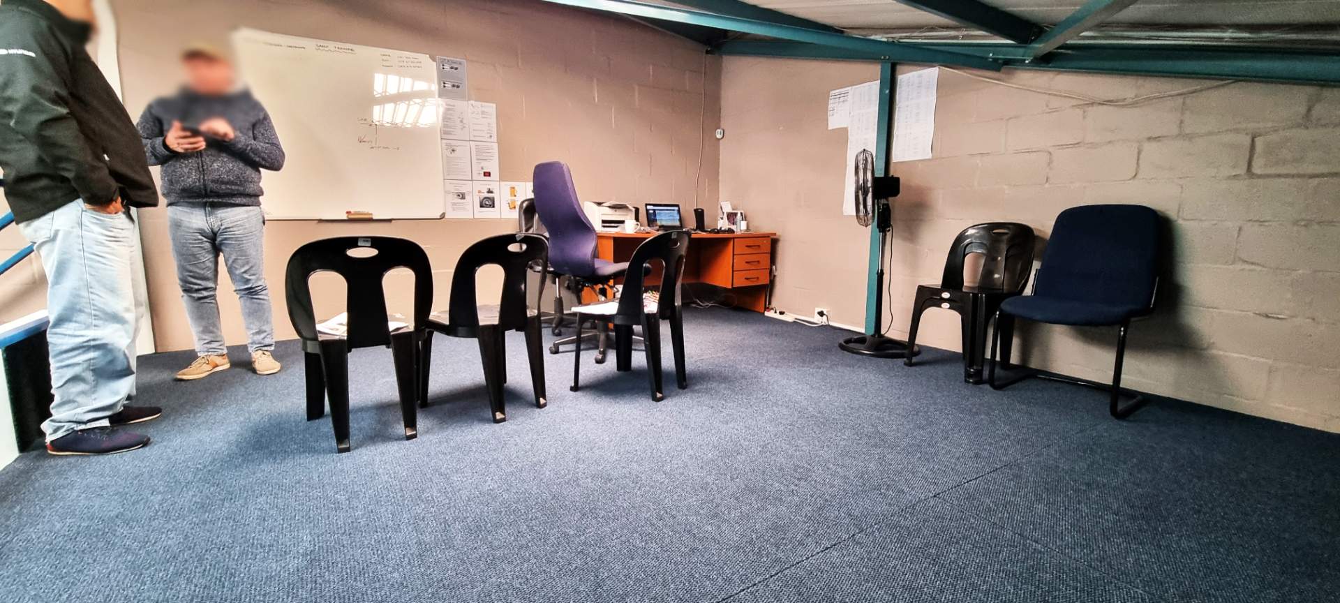 -Drywalled storeroom at the back with steel racking (can be removed)