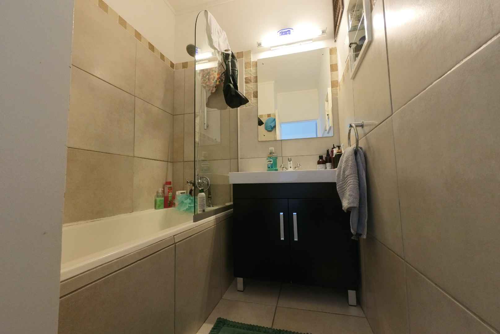 There are two bedrooms, each with wide windows offering lovely views, and floor-to-ceiling built-in cupboards for ample storage. The bathroom layout is practical, featuring a separate toilet and a bathroom with a basin, bath, and overhead shower. Water is included in the monthly levy.