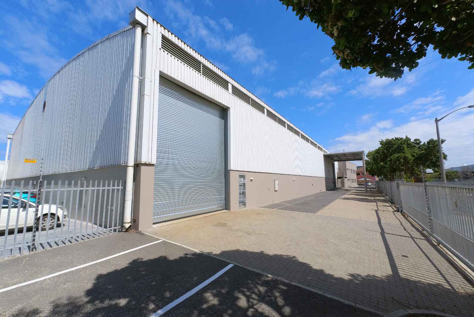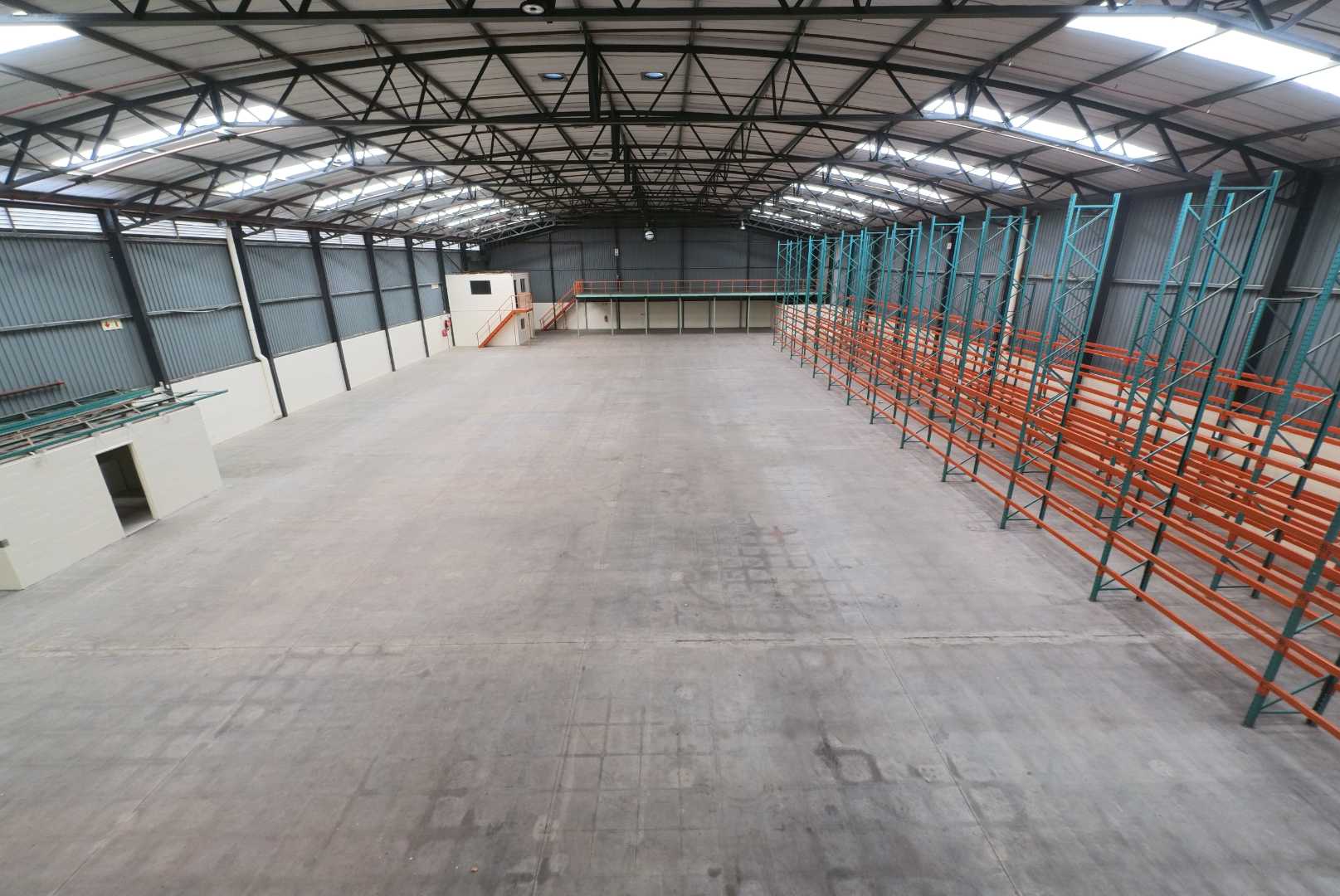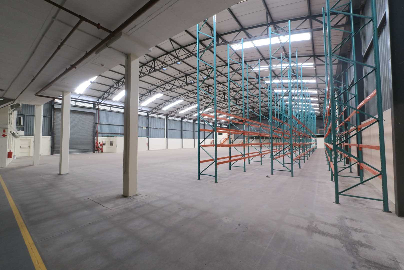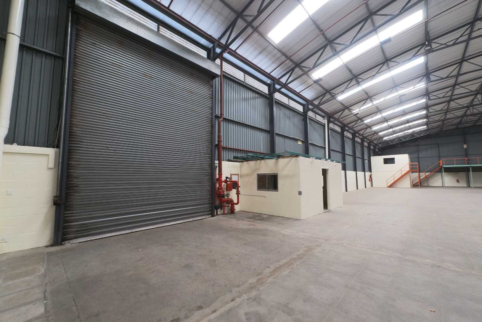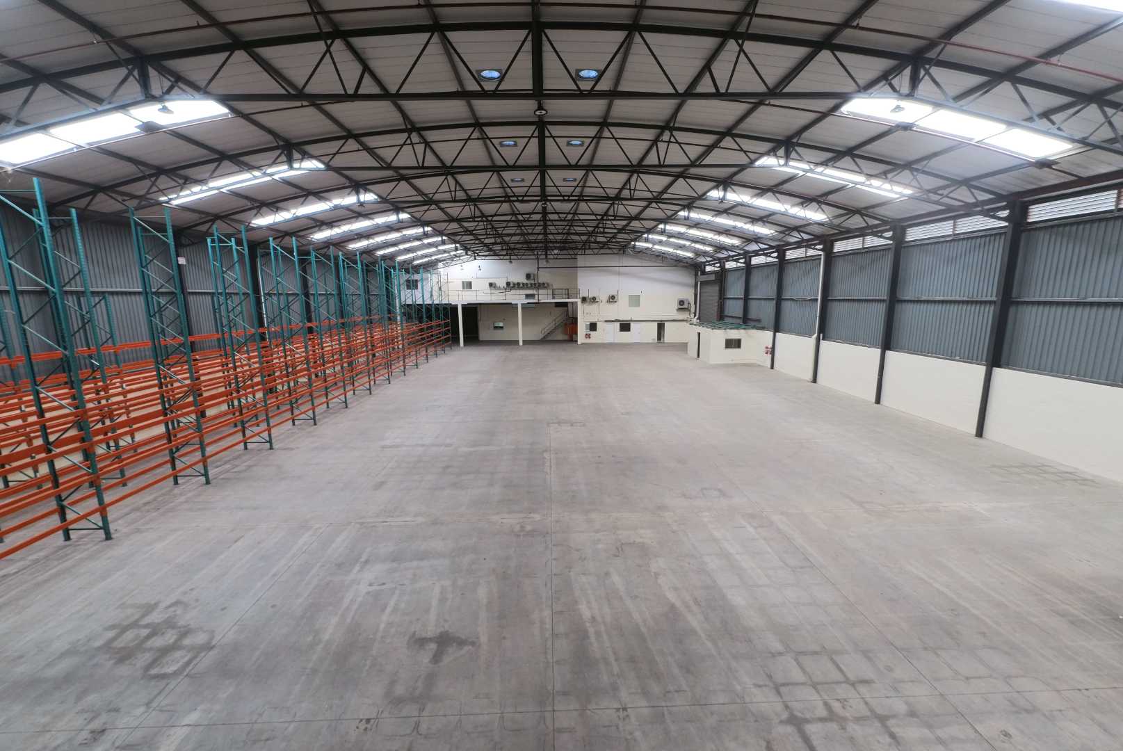 The warehouse component spans approximately 2,000m2 and offers an impressive 9-metre clear height, making it ideal for high-volume storage, pallet racking, and logistics operations. The facility is equipped with three large roller shutter doors allowing seamless access for containers and interlink trucks. Covered loading and dispatch areas ensure uninterrupted operations in all weather conditions, while mezzanine levels provide additional light storage. A roof-level sprinkler system is installed, and the site is designed with separate entry and exit points to ensure efficient truck circulation.