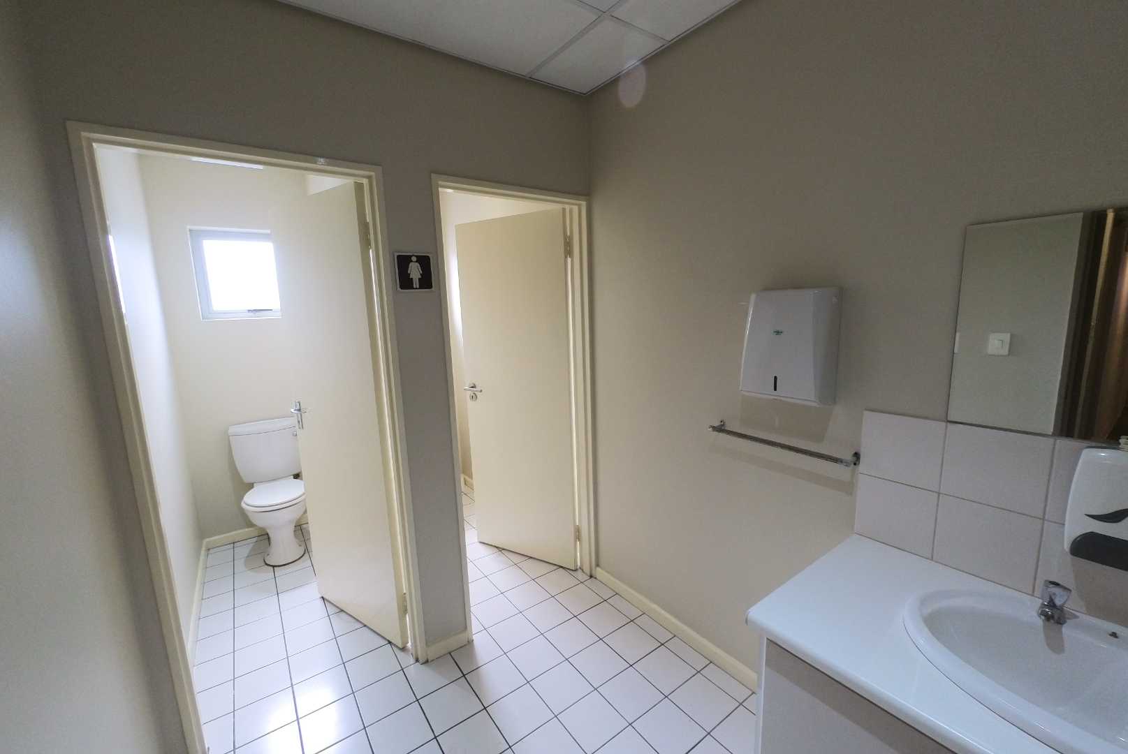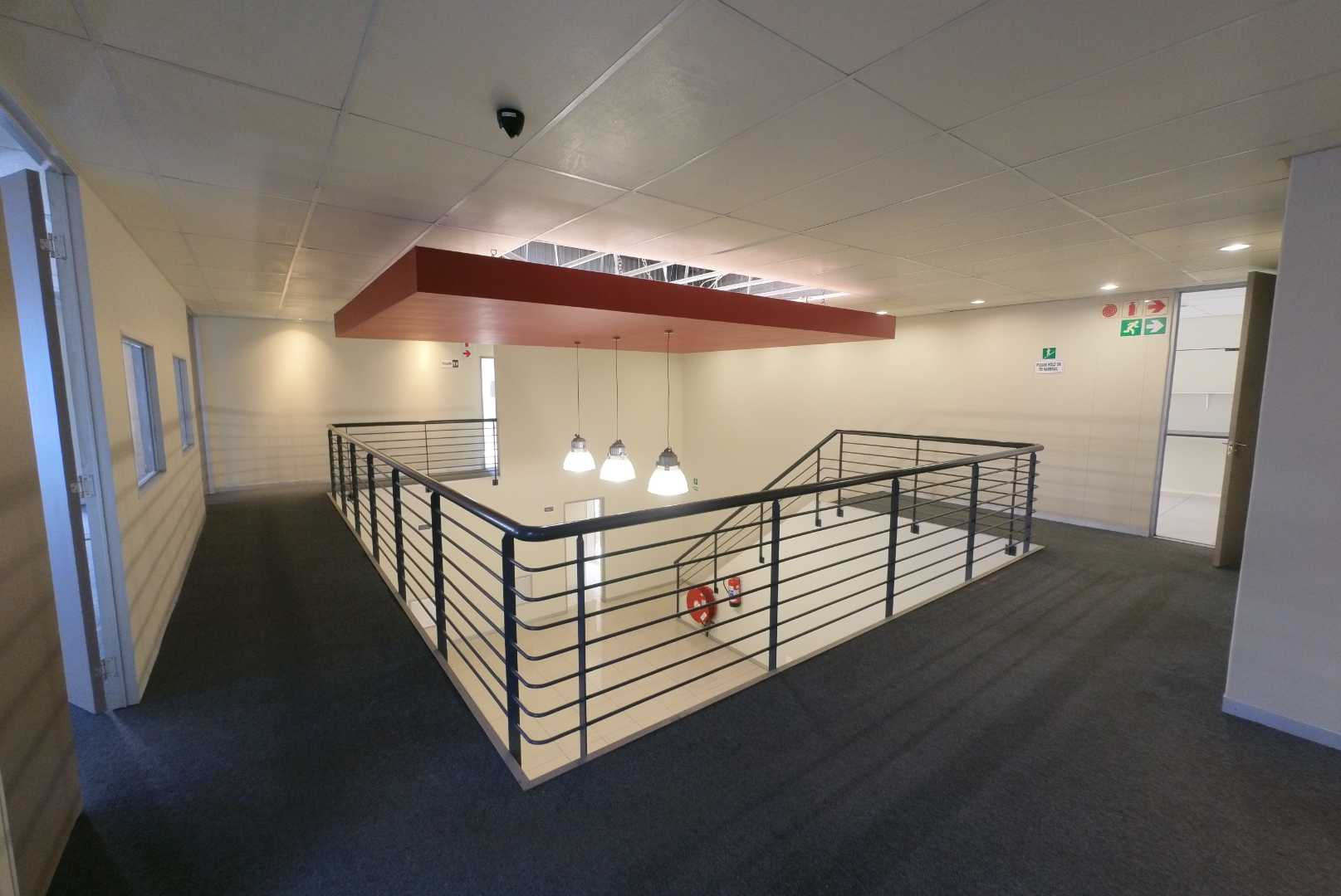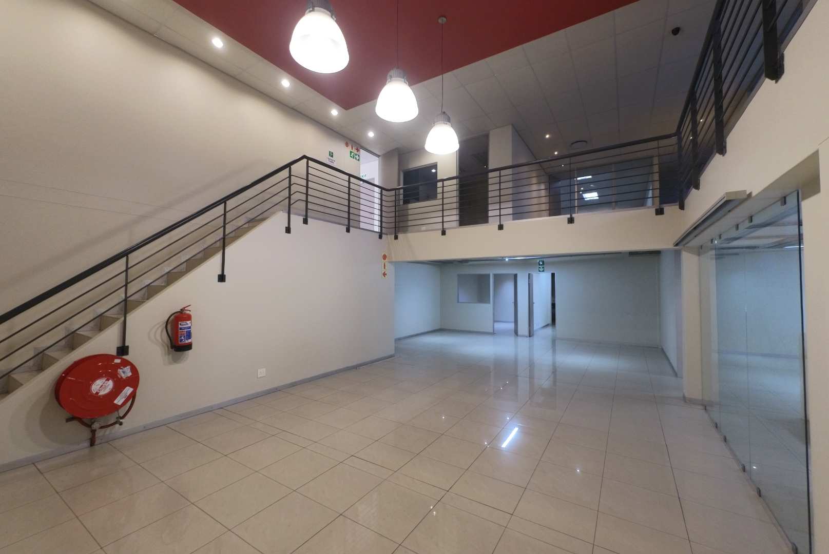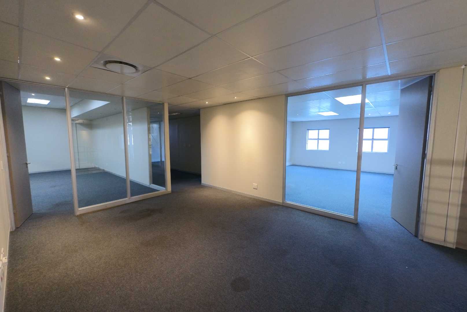 The property includes approximately 1,100m2 of modern office space arranged over two floors. Finished to an A-grade standard, the offices feature air-conditioning, raised flooring, and contemporary interiors. The layout accommodates a reception area, boardroom, private offices, meeting rooms, open-plan workspaces, a fully fitted kitchen, a secure server room, and generous ablution facilities.