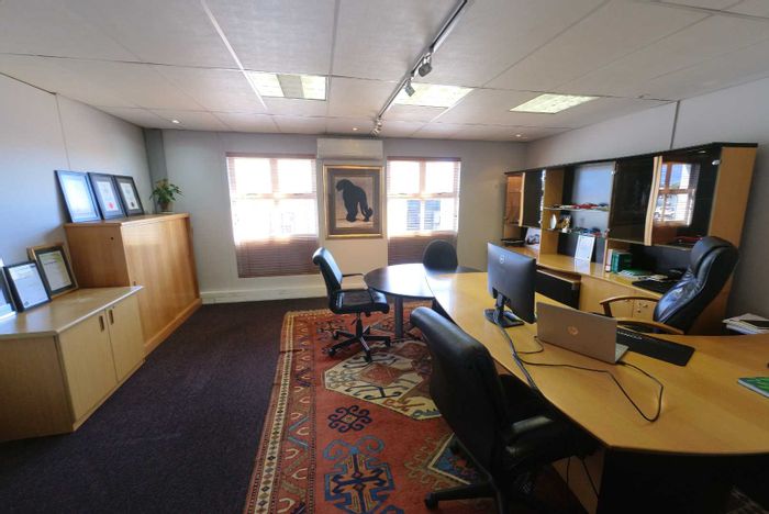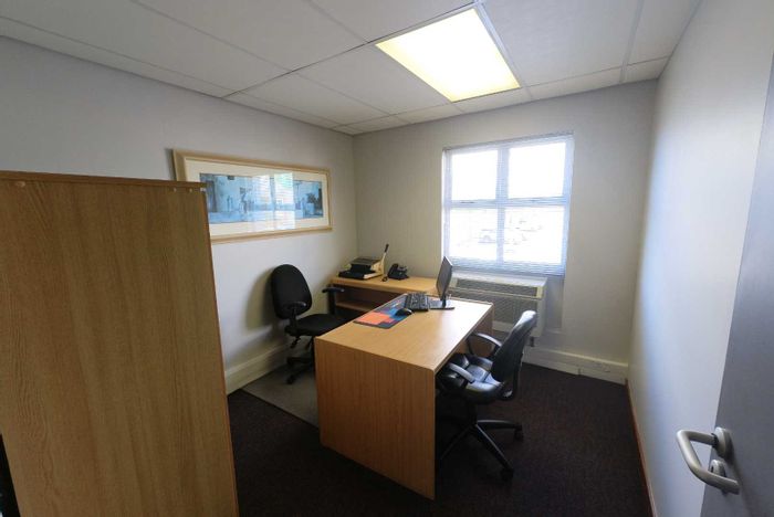 Flexible first-floor corner office in Millennium Business Park, Century City — two self-contained interconnecting units (116 m²), each with own entrance, bathroom and kitchen; four dedicated parking bays.