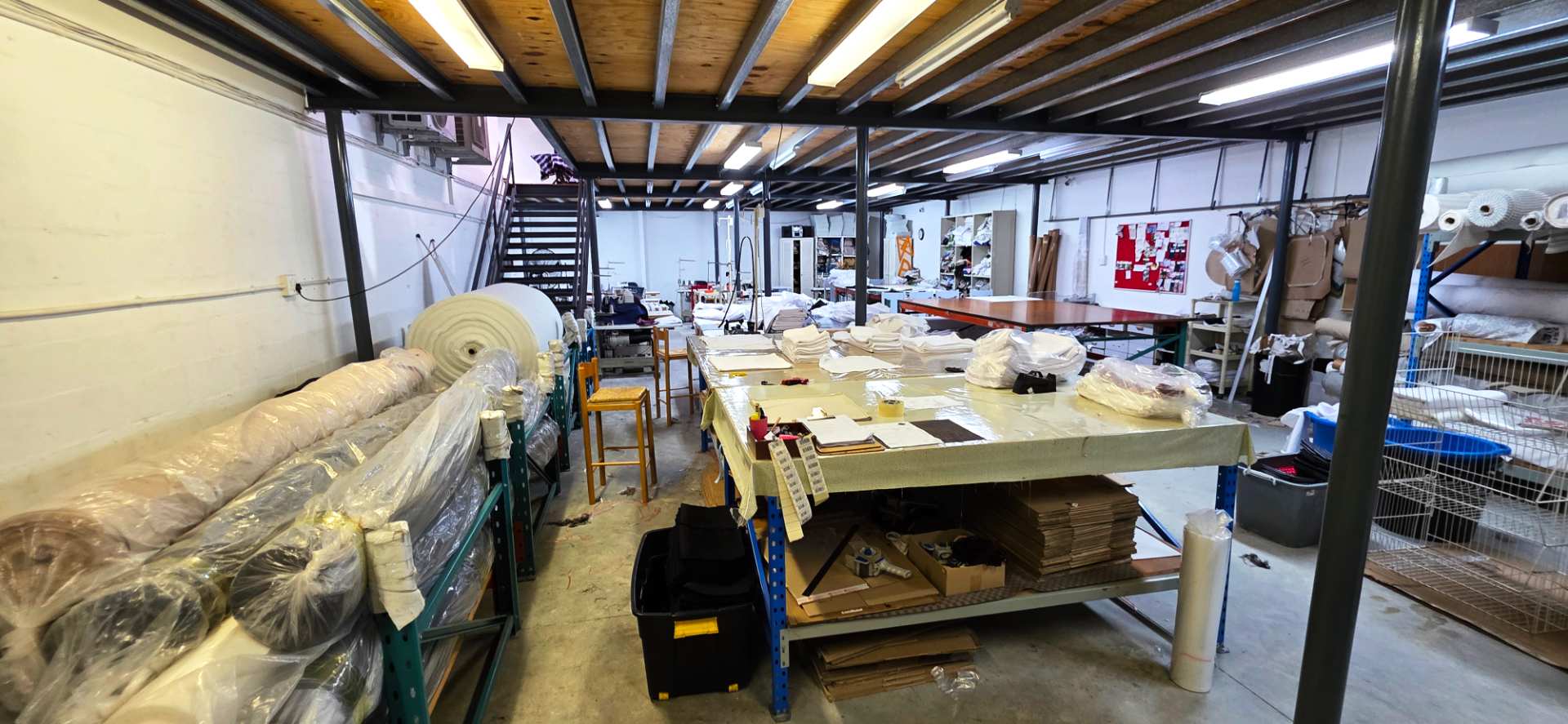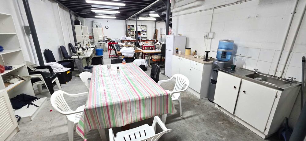-Open-plan warehousing with its own kitchenette and bathroom for factory staff