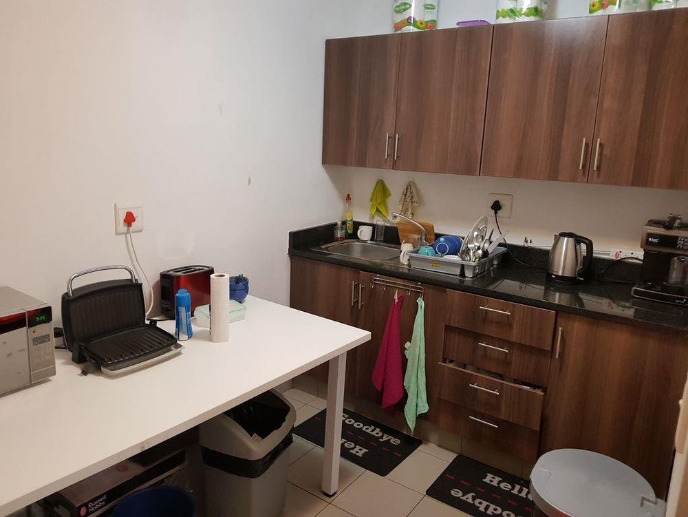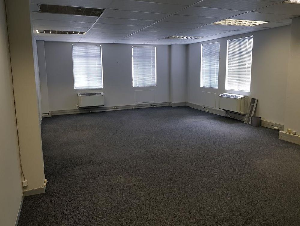 This unit consists of an open-plan space with a glass window office in the corner. There are communal bathrooms and a kitchen.