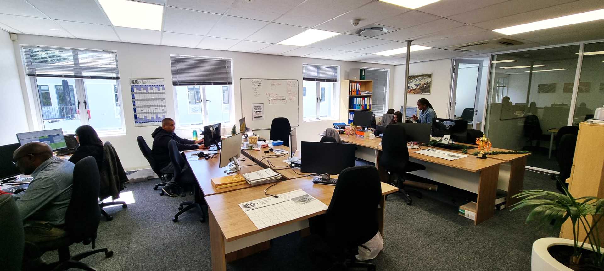 -Large open plan work area, with various smaller offices, a games room and a board room