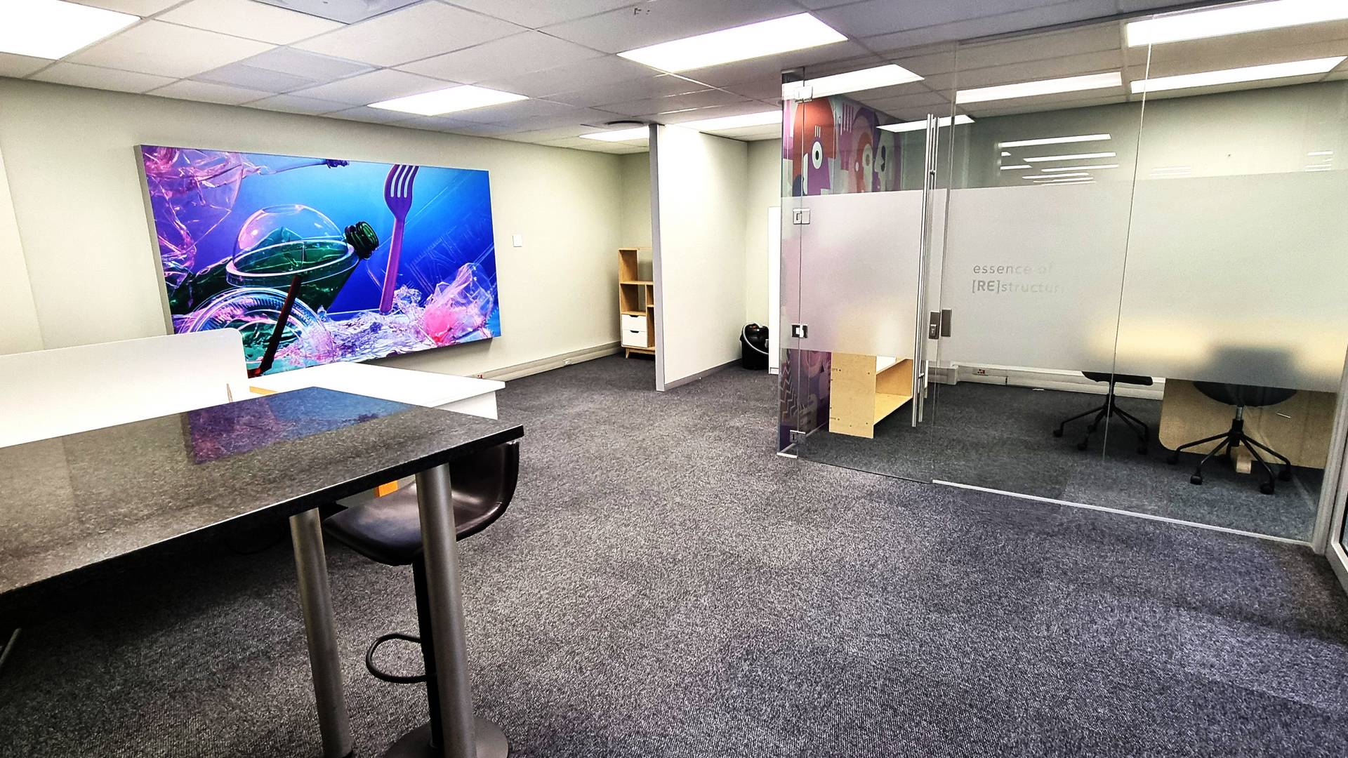 -Large modern office space with an open-plan work area and various private offices and a boardroom