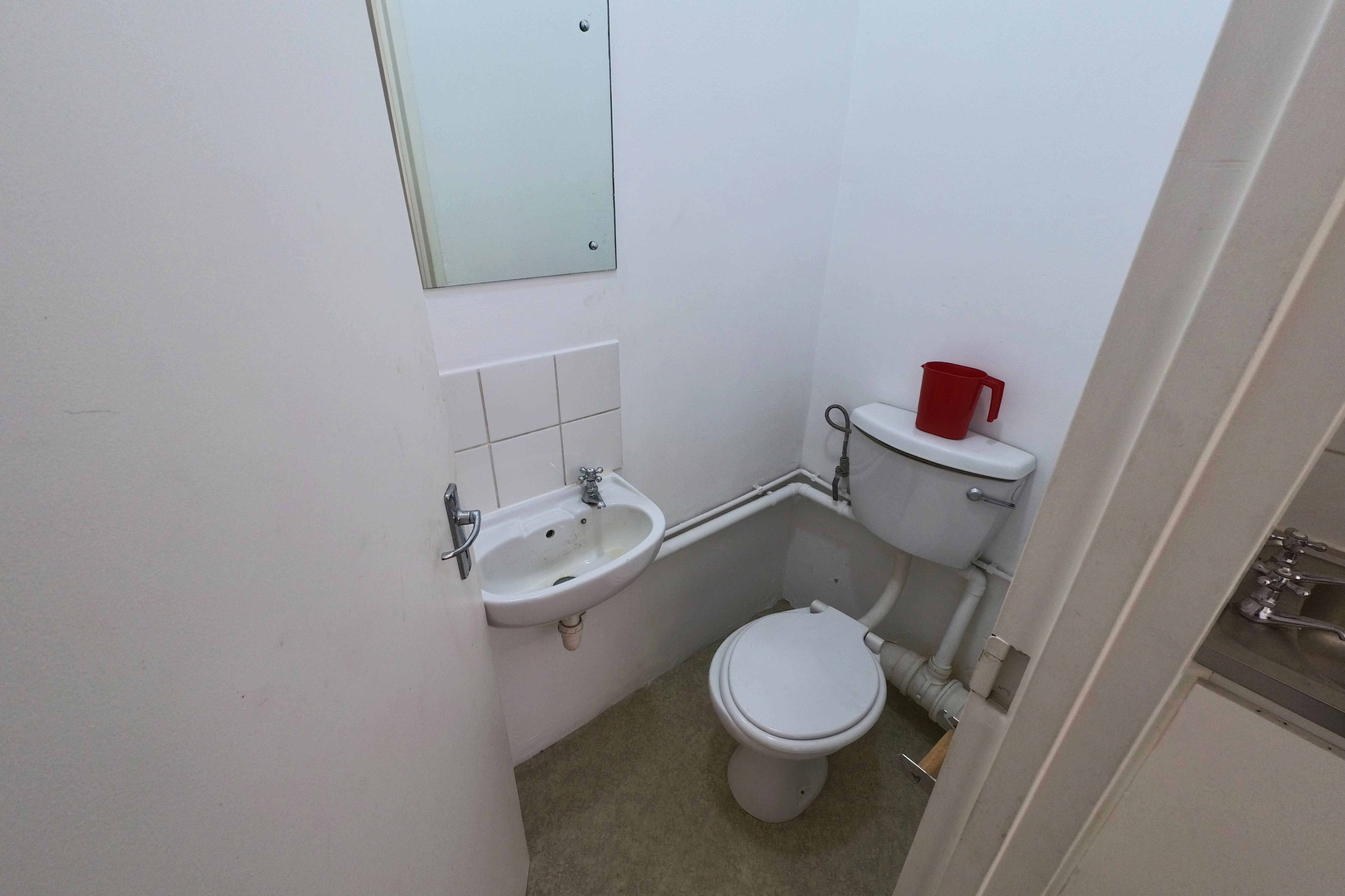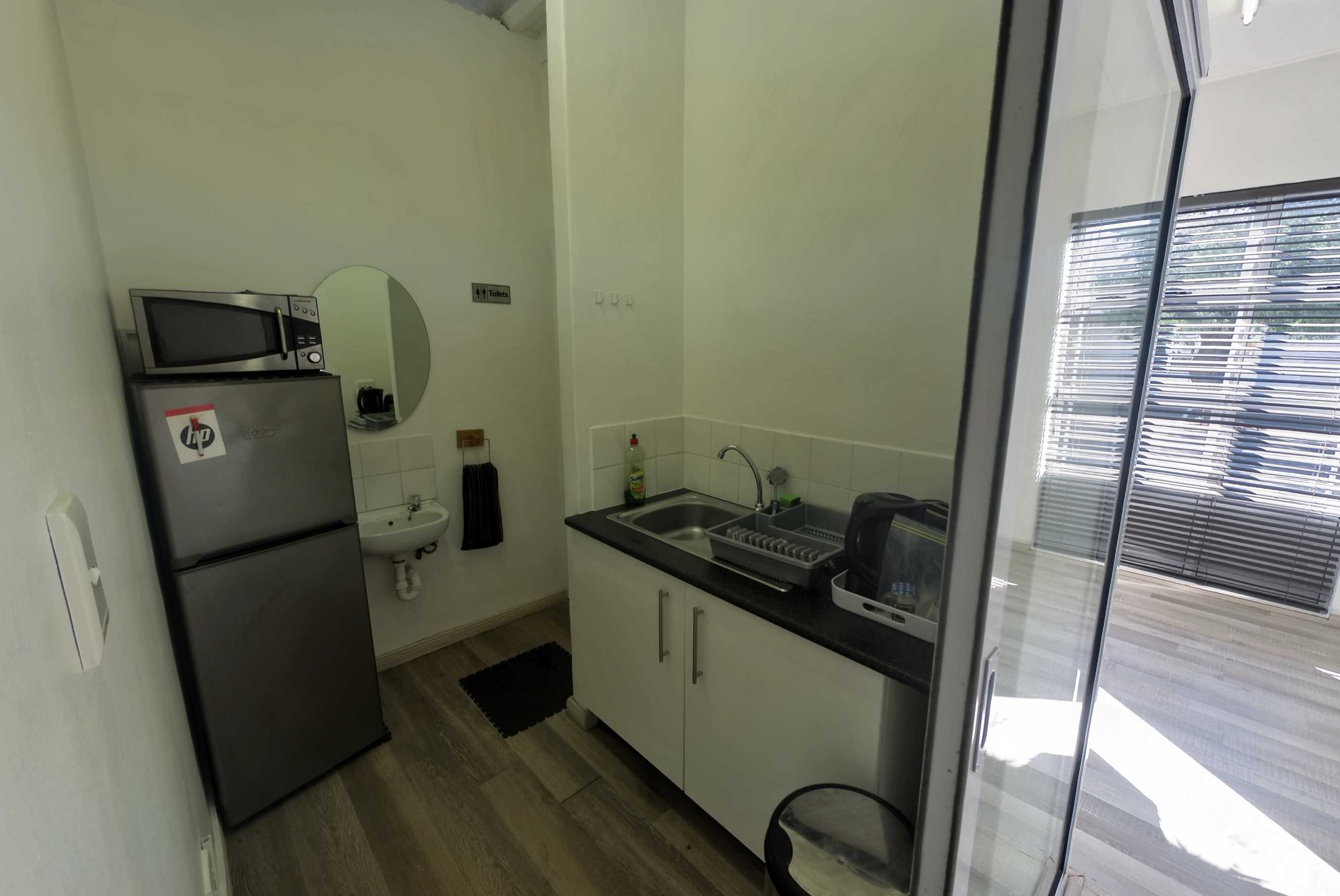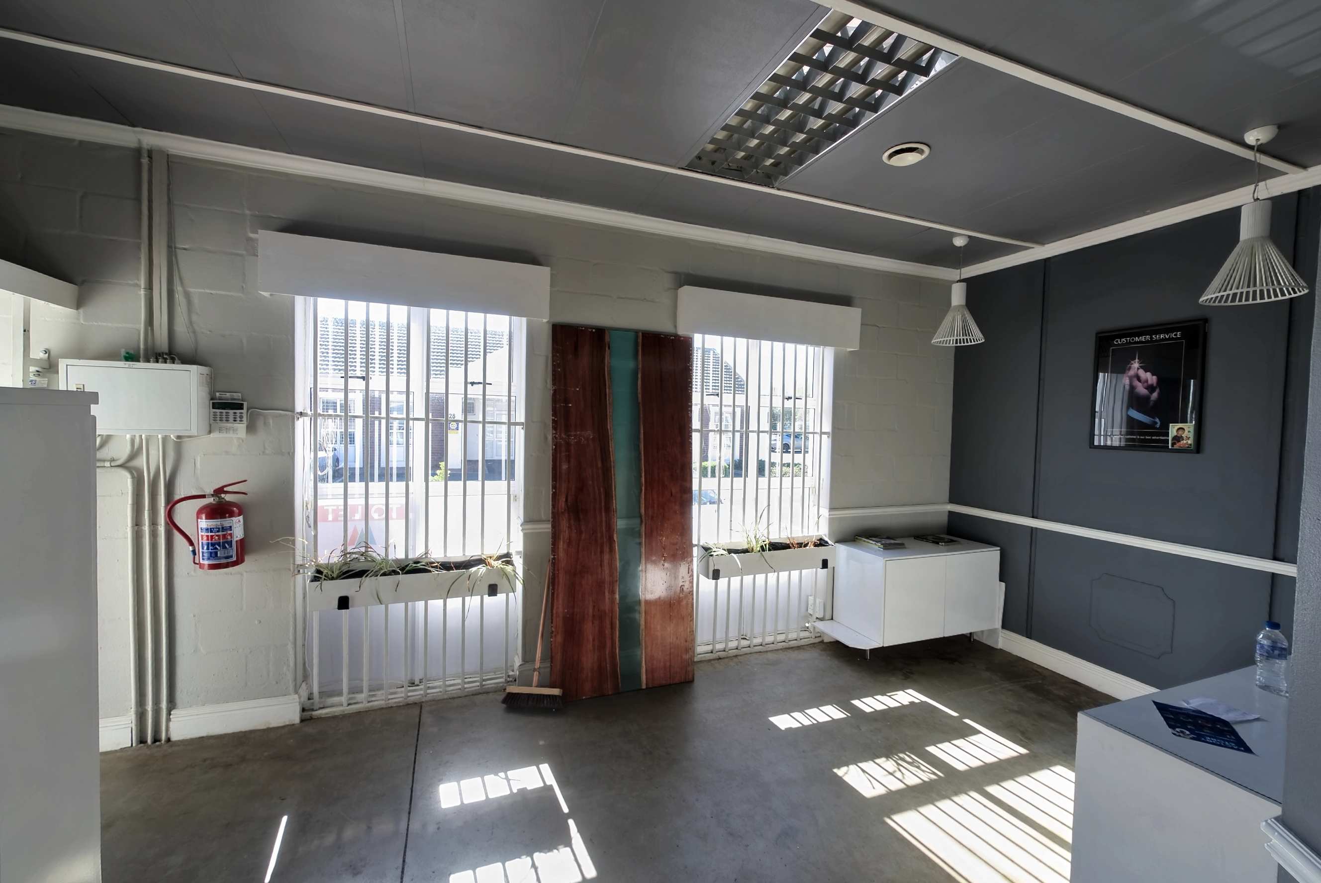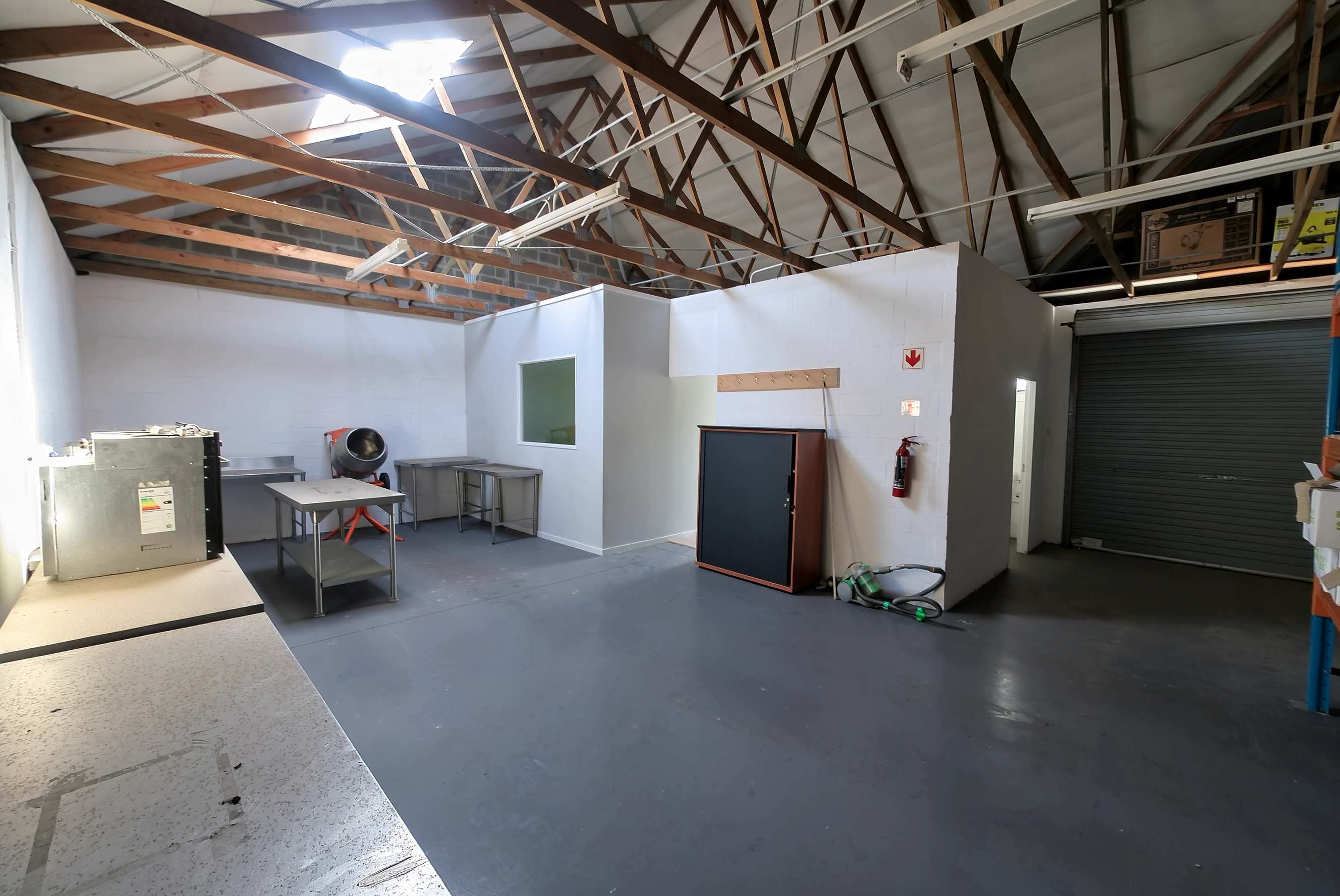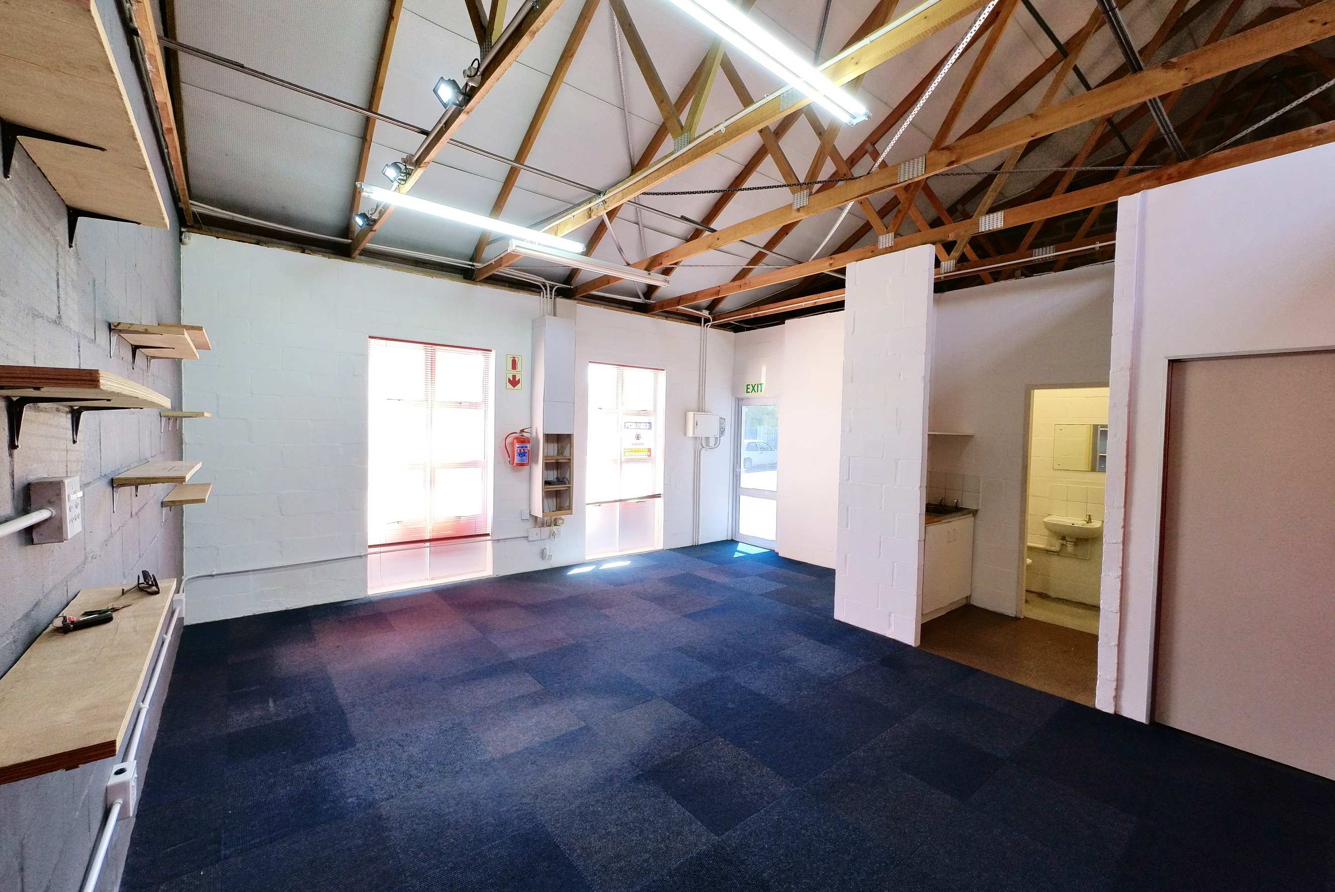 Kitchenette and two bathrooms (one in the storage section, one in the office area)