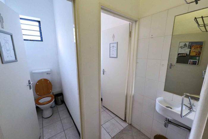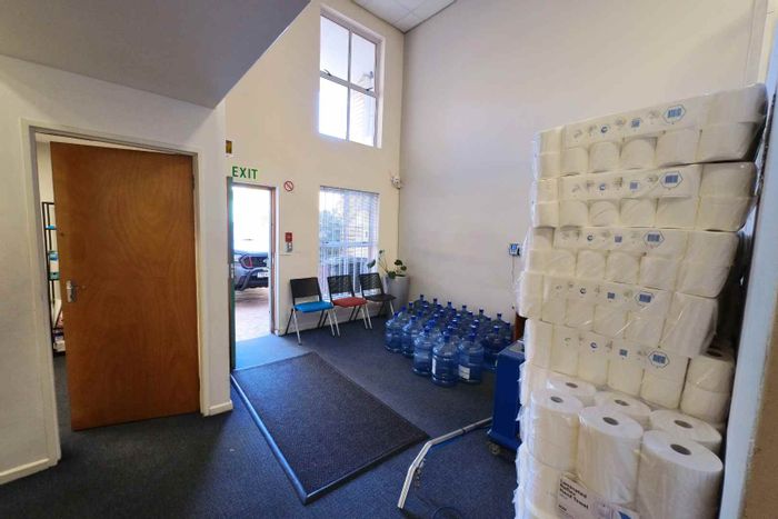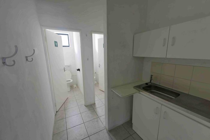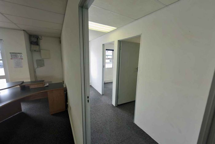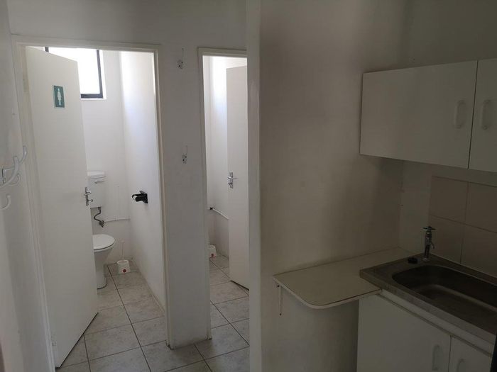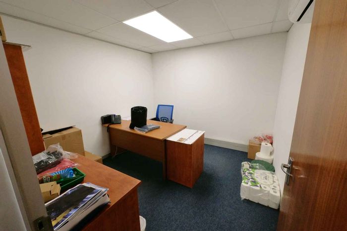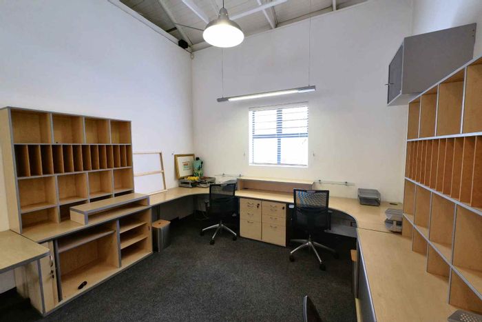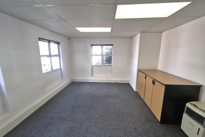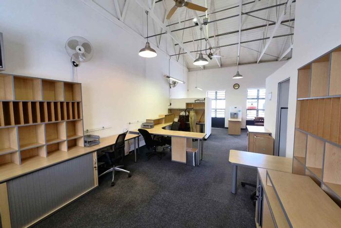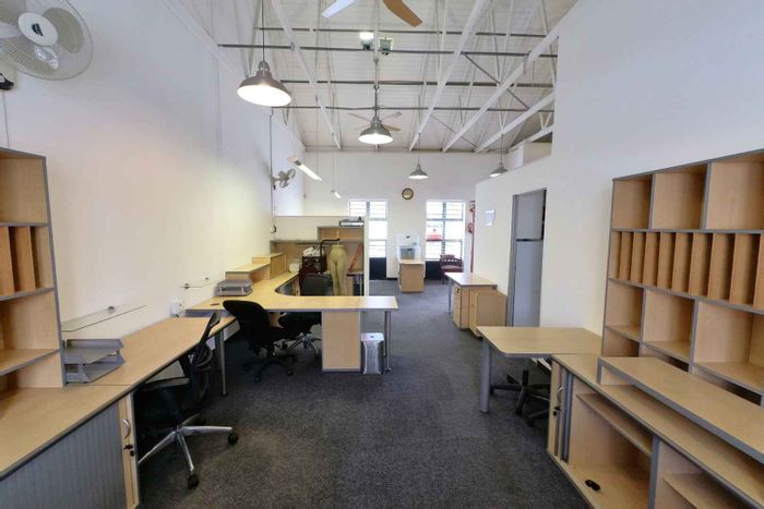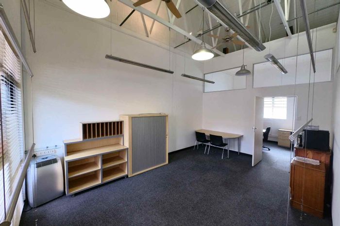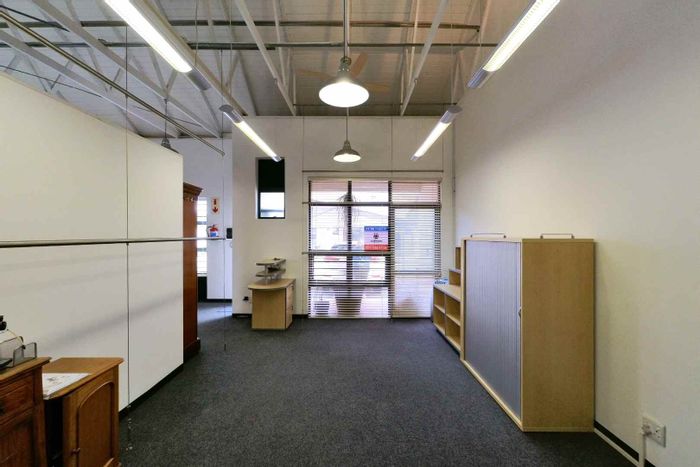 Bright, refurbished ground-floor unit in a secure, well-managed business park — open-plan workspace with high ceilings, two entrances, kitchenette, two ablutions and six dedicated parking bays.