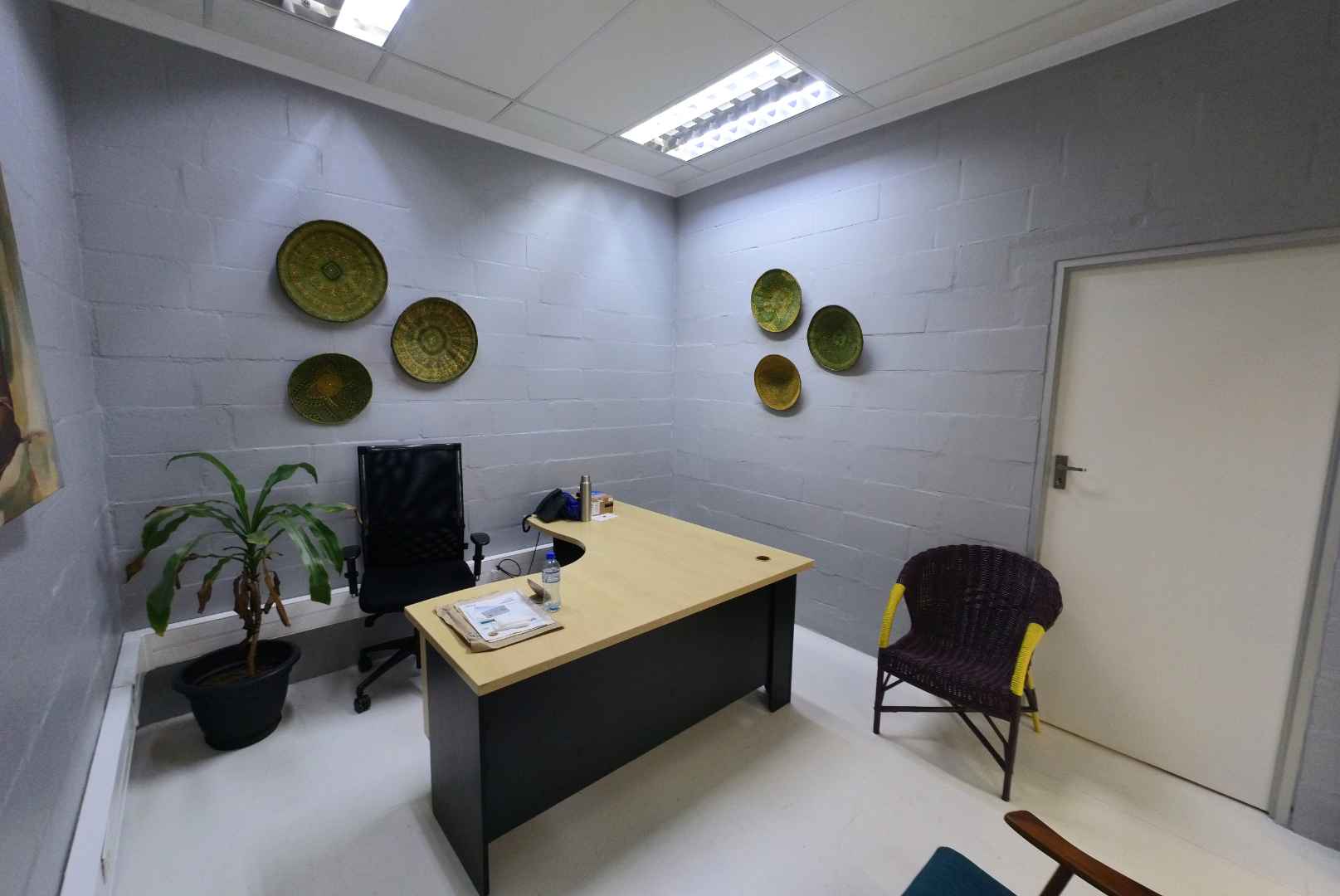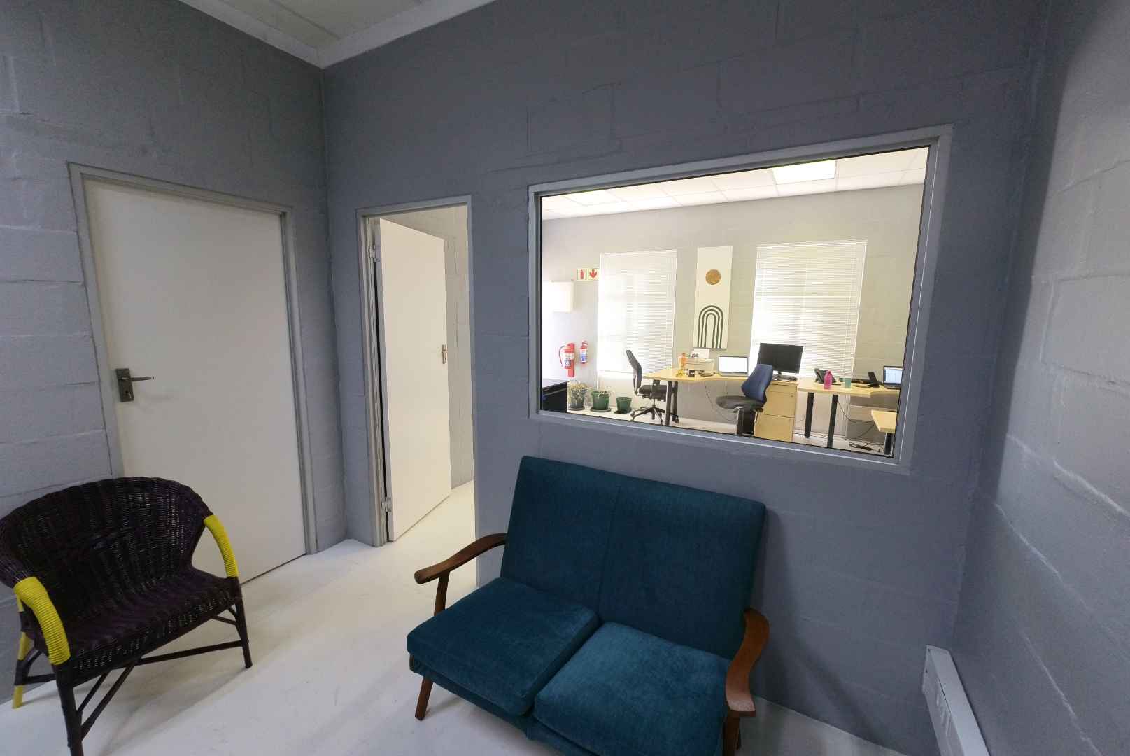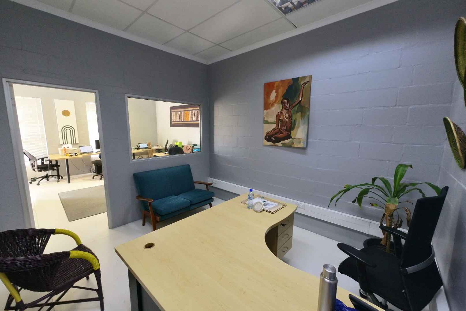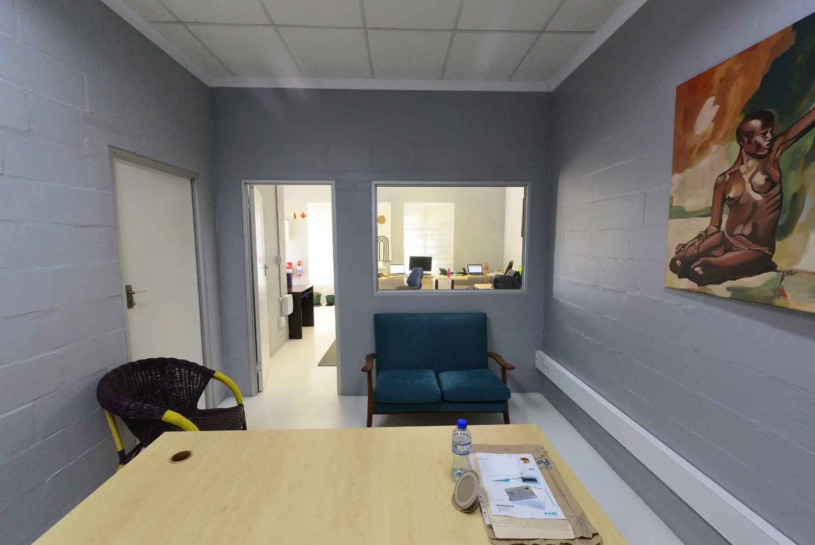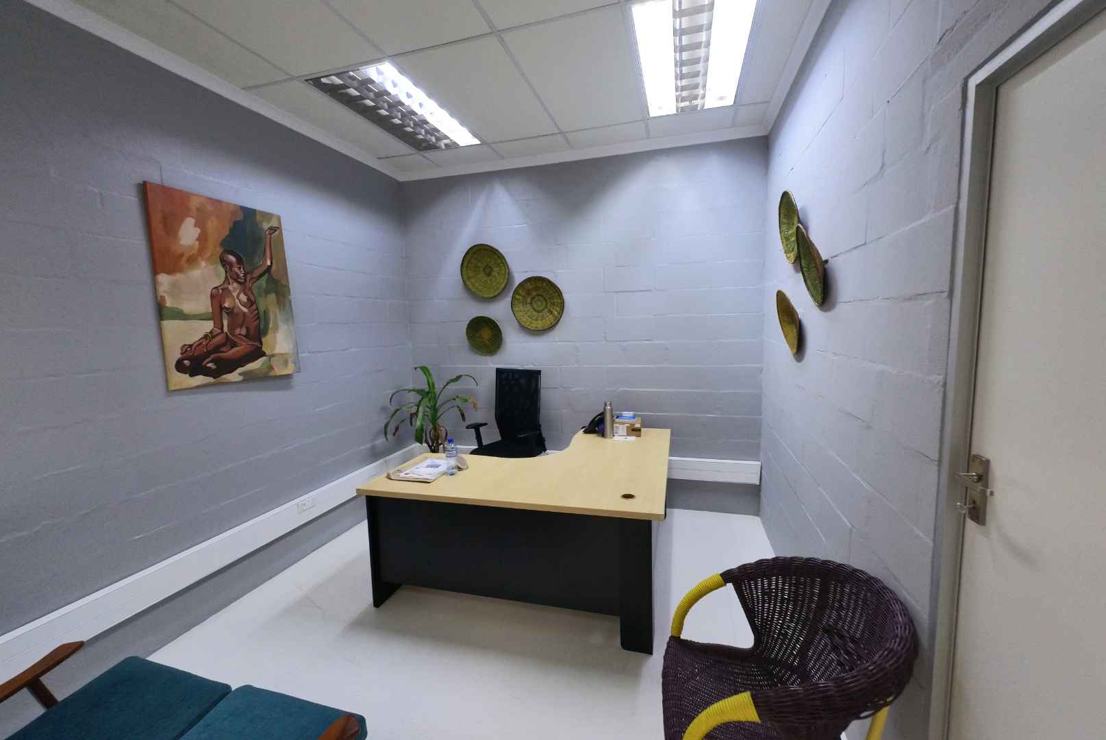 The office space is thoughtfully partitioned with drywall to create a functional layout. It features a welcoming reception/office area and a private office at the rear. Additionally, the unit includes one ablution facility, an installed alarm system, and free WiFi as part of the rental package.